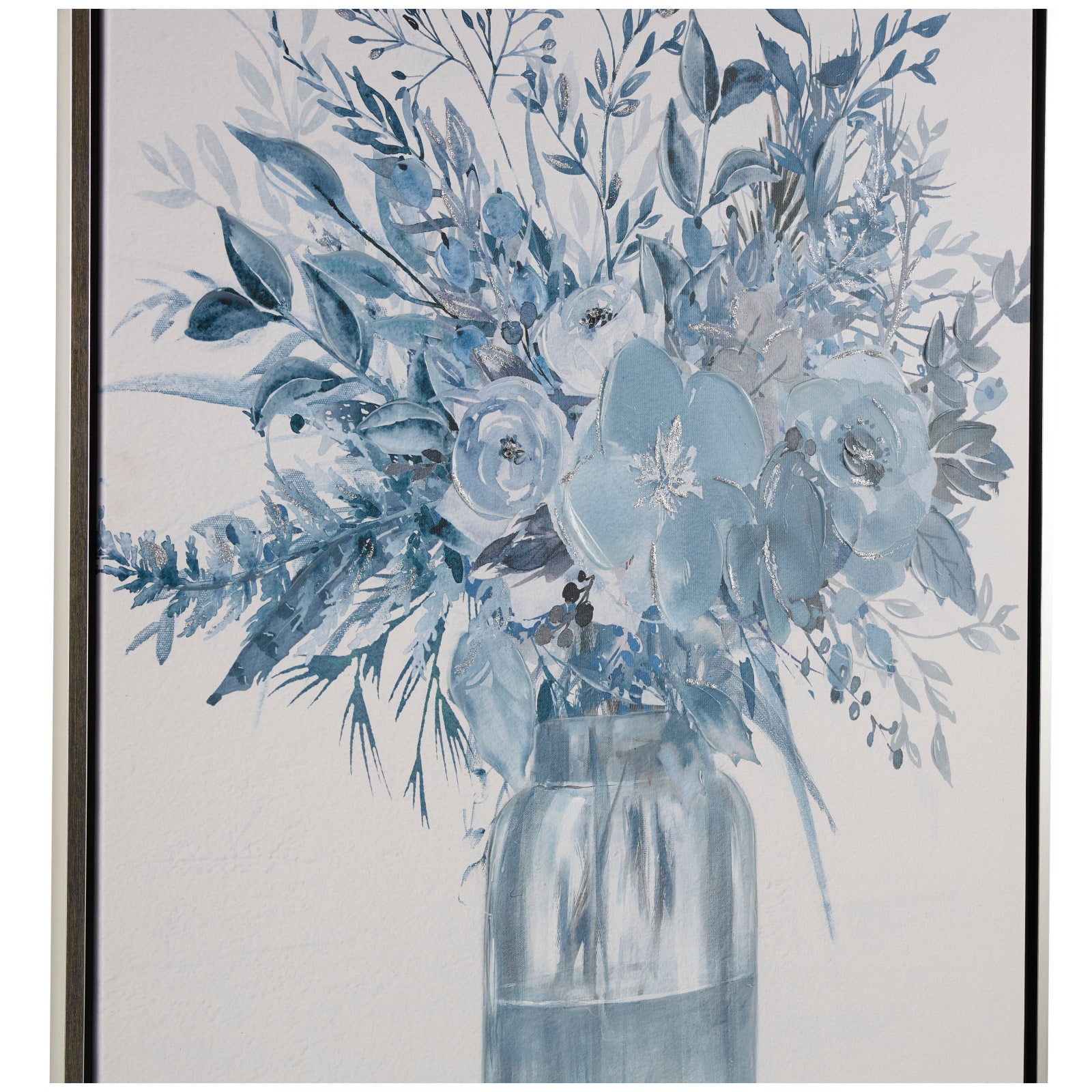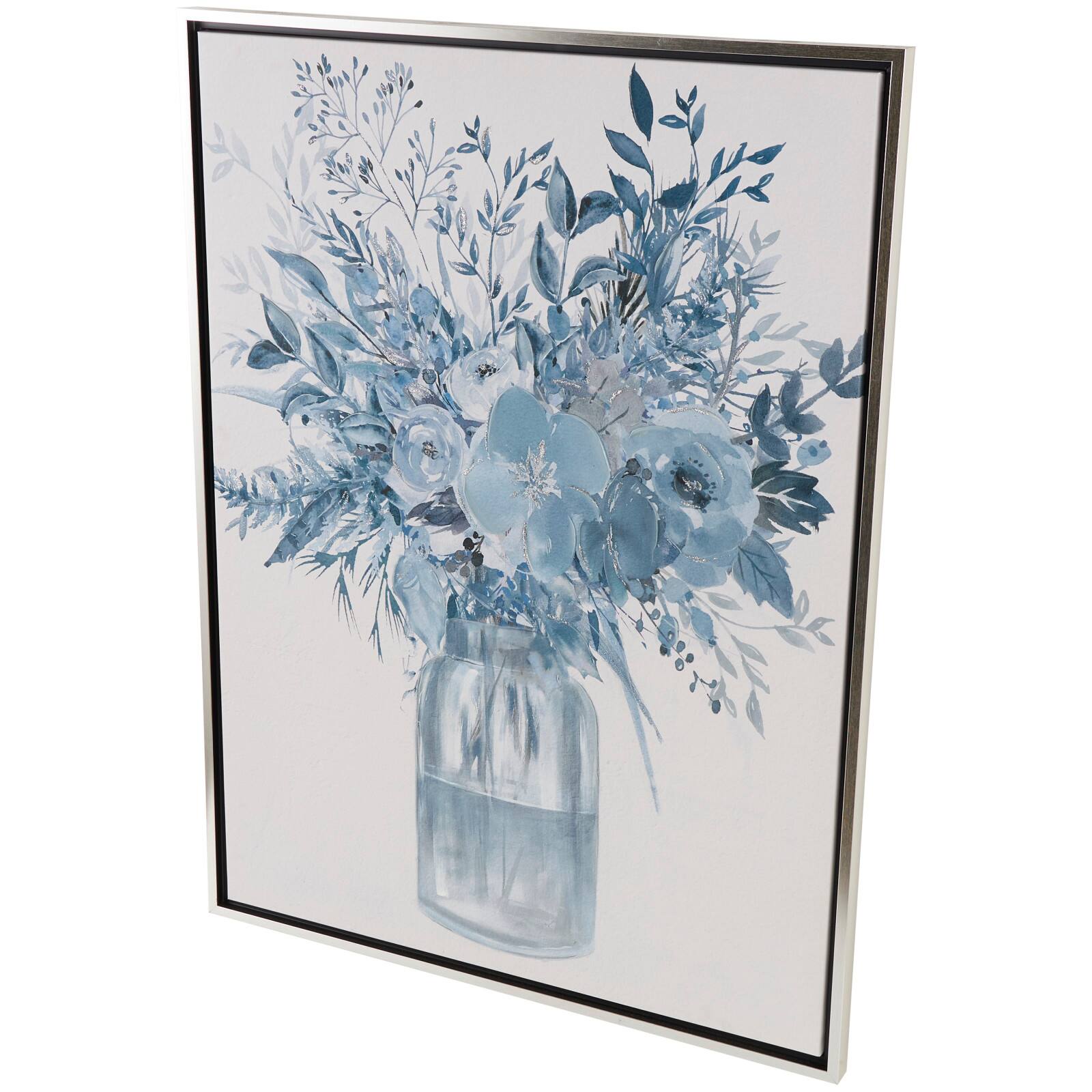 30" x 40" Blue Canvas Floral Bouquet Framed Wall Art with Silver Frame