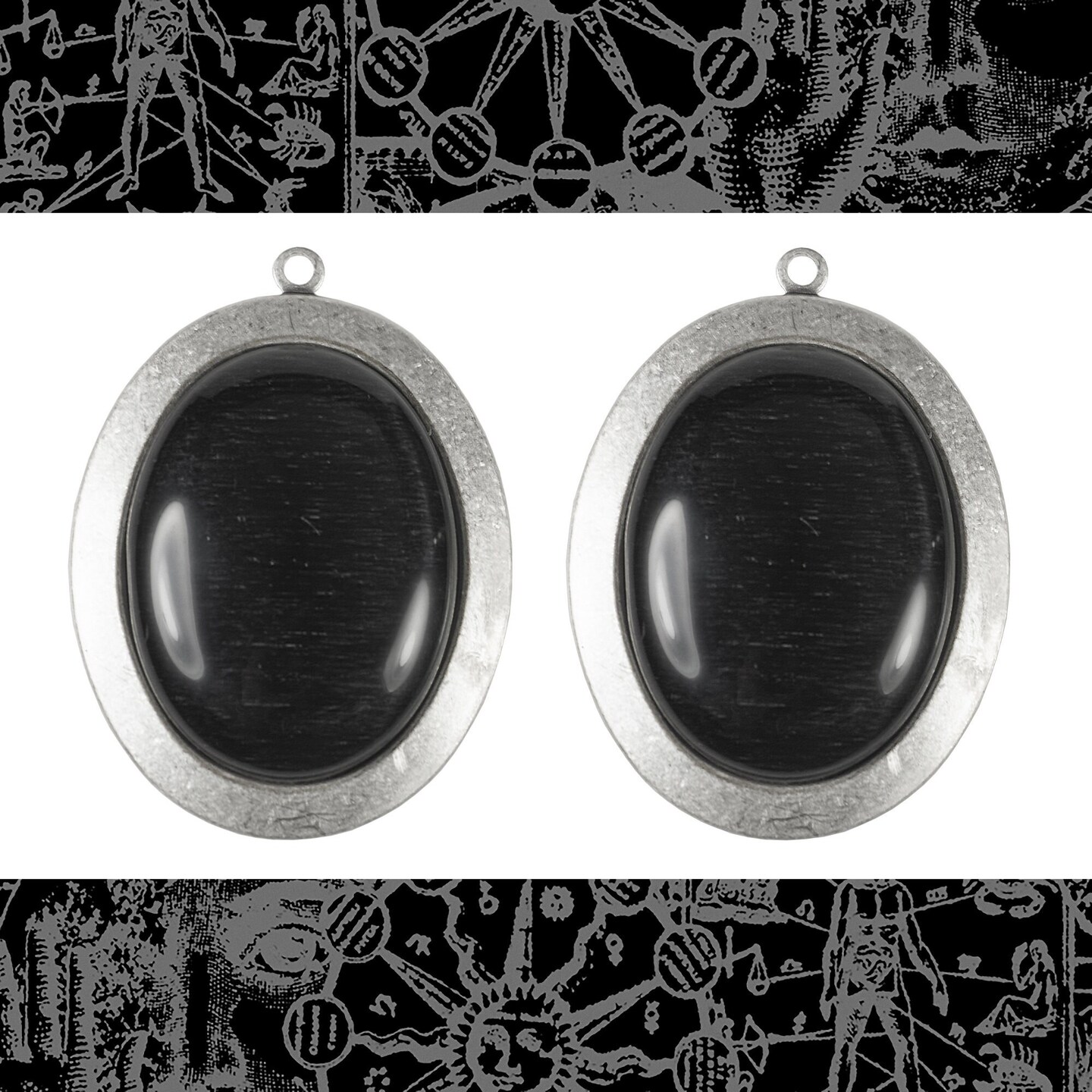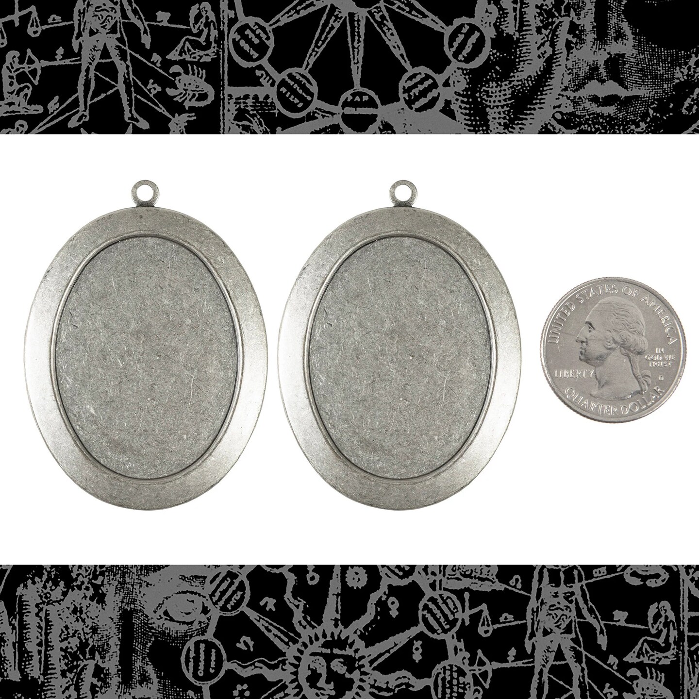 30 x 40mm Silver Plated Brass Cameo Frames with Smooth Border - Set of Two *S-F37