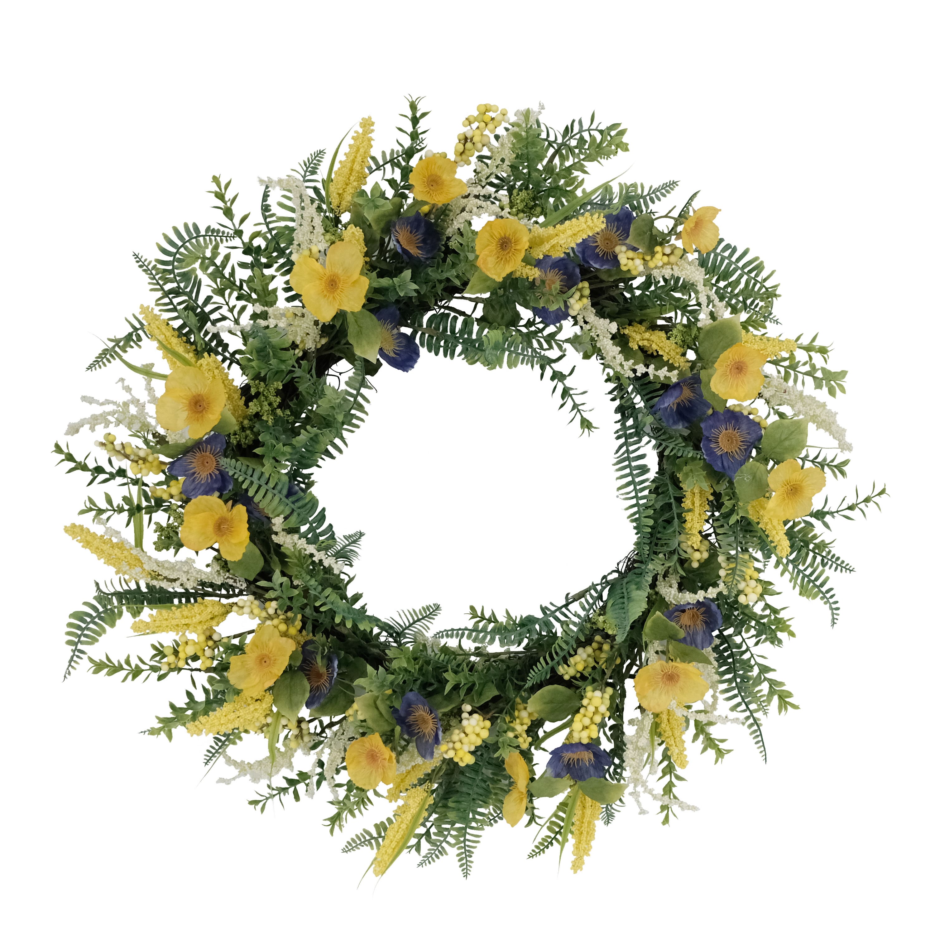 30" Yellow & Purple Poppy & Fern Floral Spring Wreath