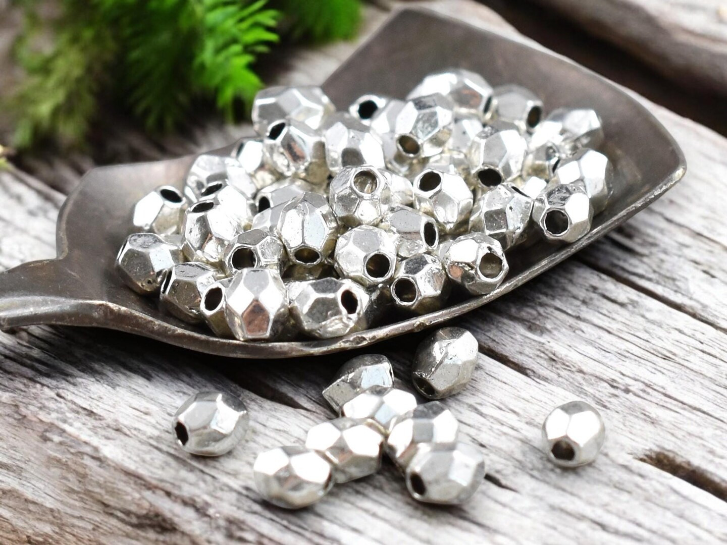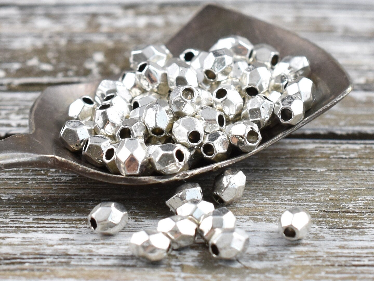 *300* 4x3mm Antique Silver Faceted Oval Spacer Beads