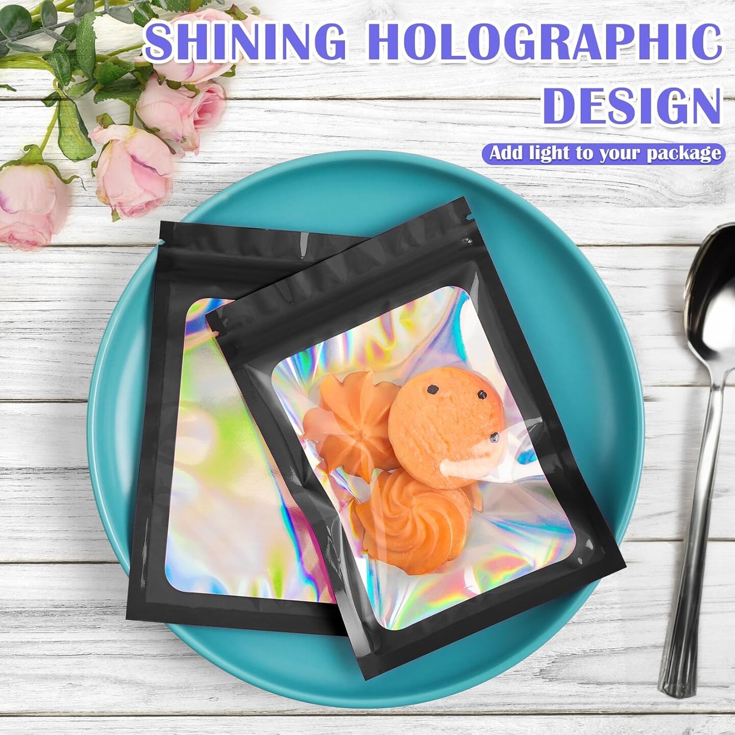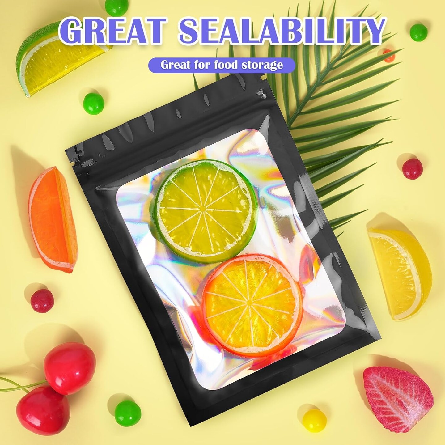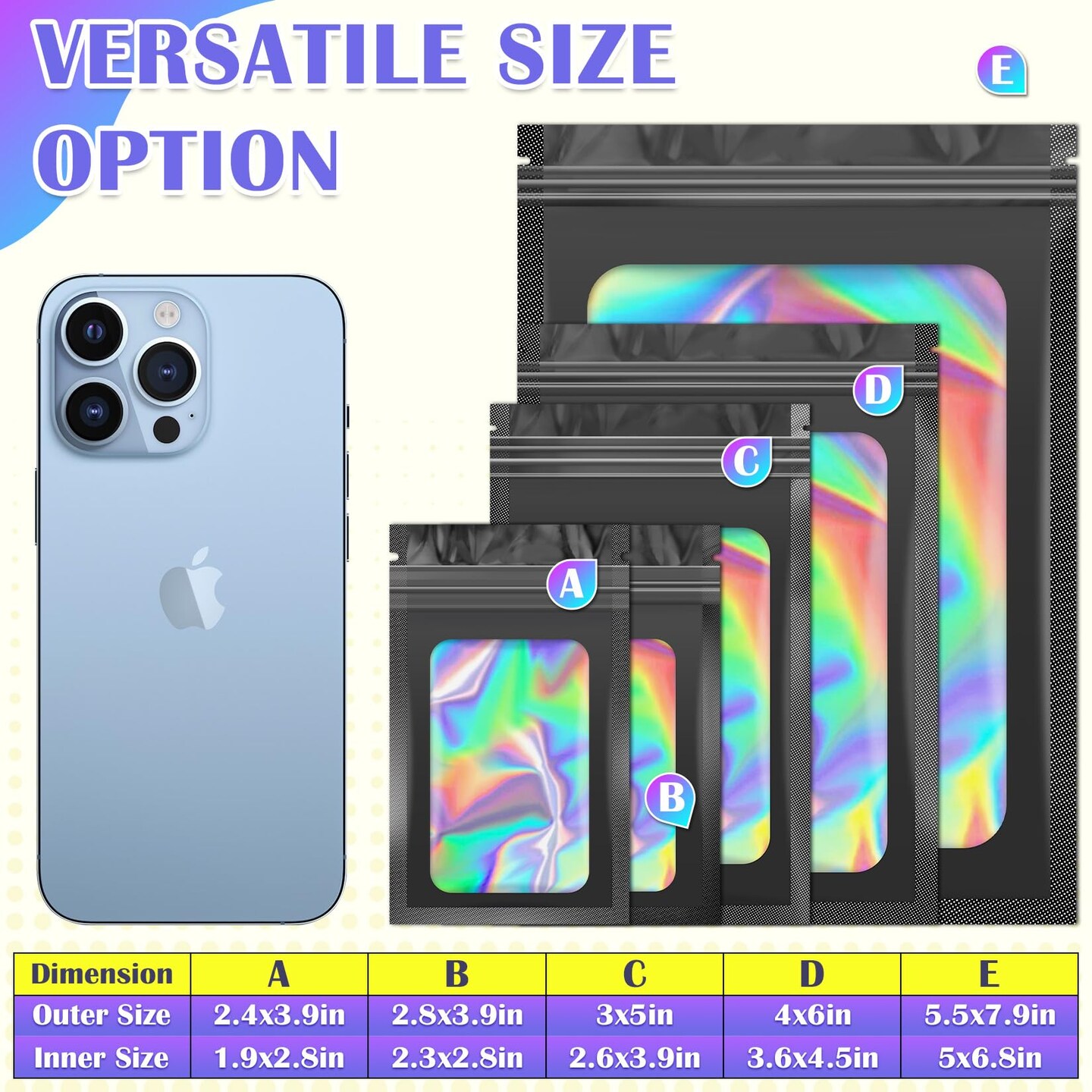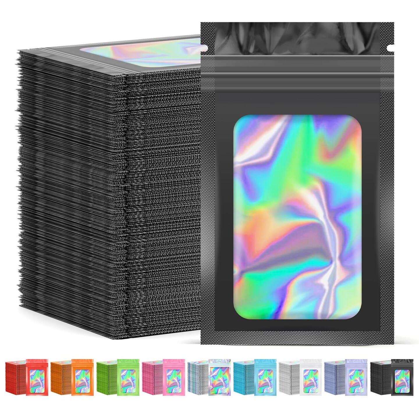 300 Pcs Mylar Bags, Smell Proof Bags Foil Pouch, Holographic Resealable Bags for Small Business, Candy Sample Jewelry Bag Sealable Packaging for Party Favor Food Storage (2.4x3.9in-Black)