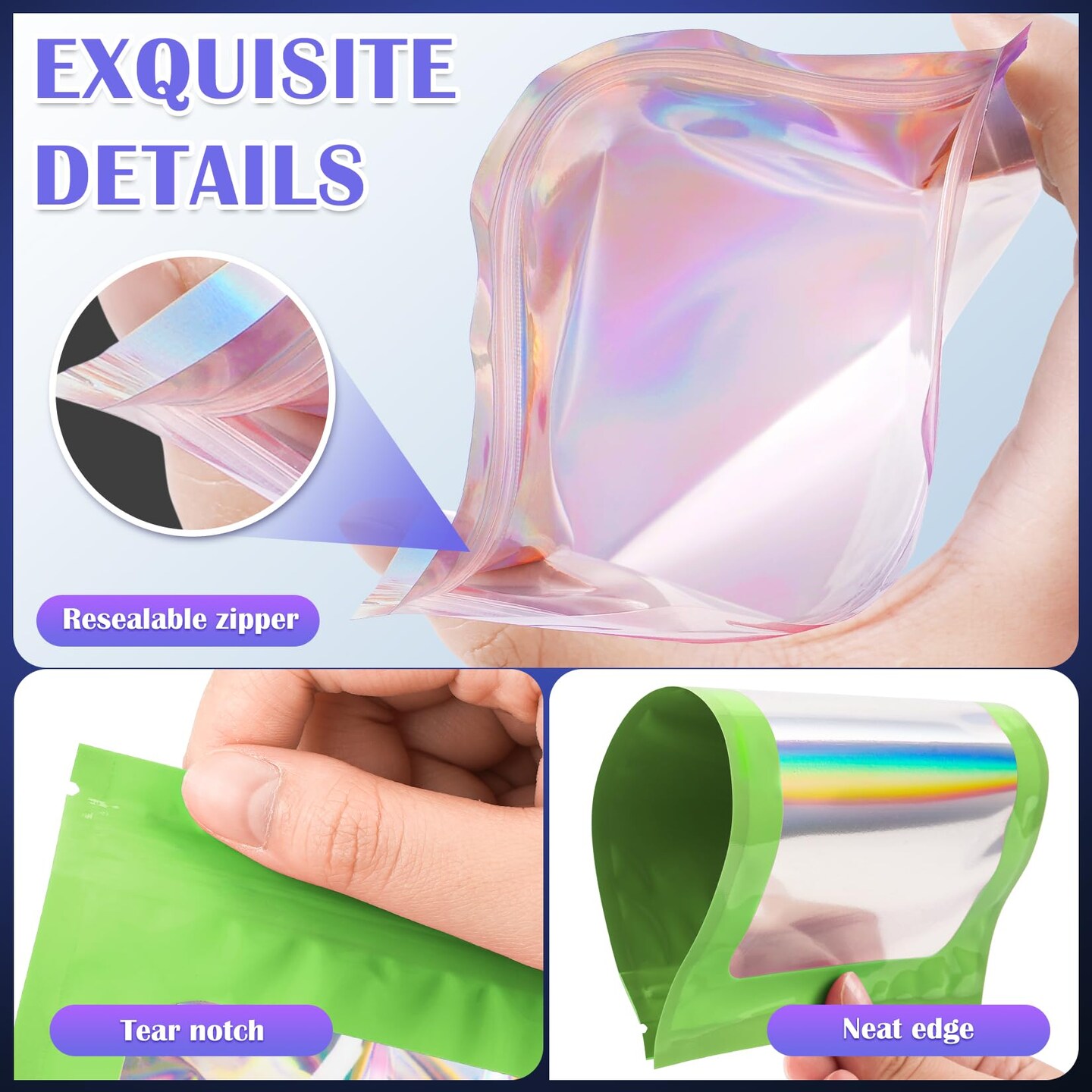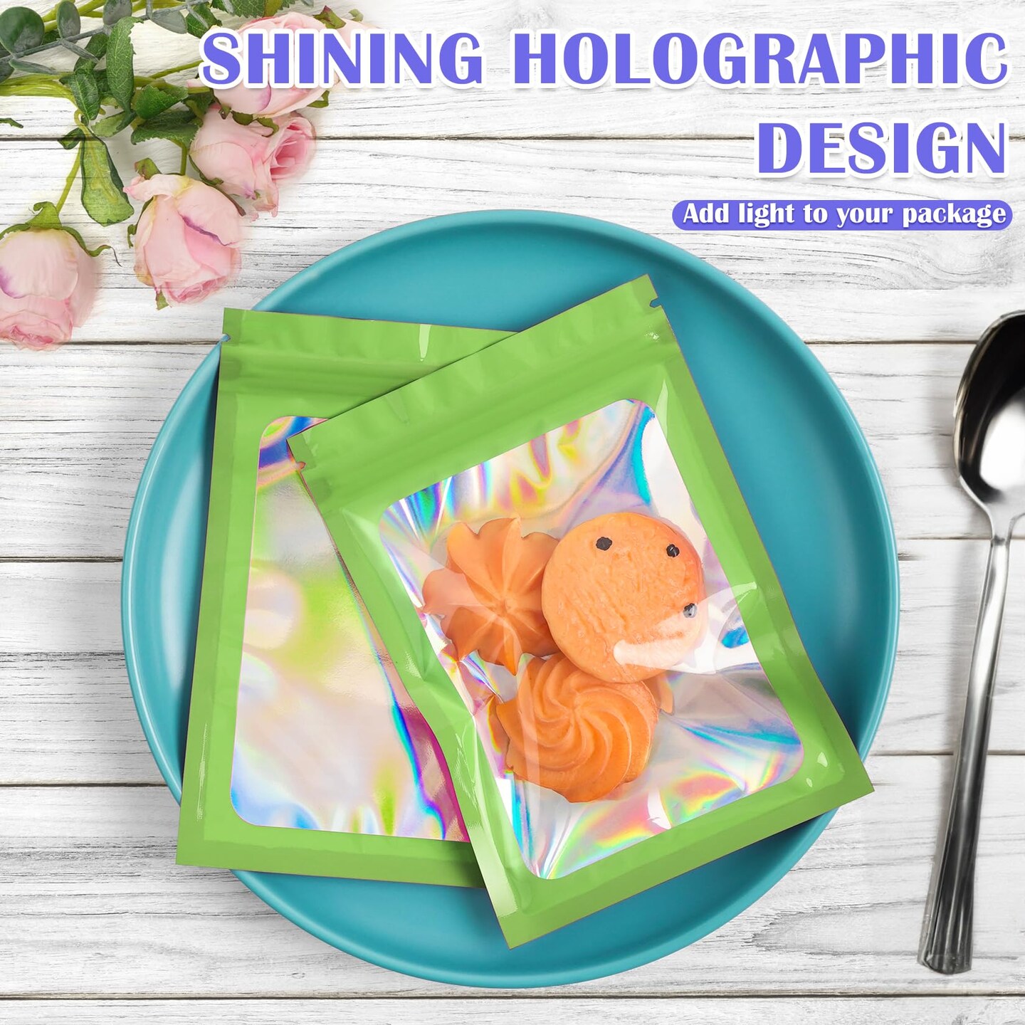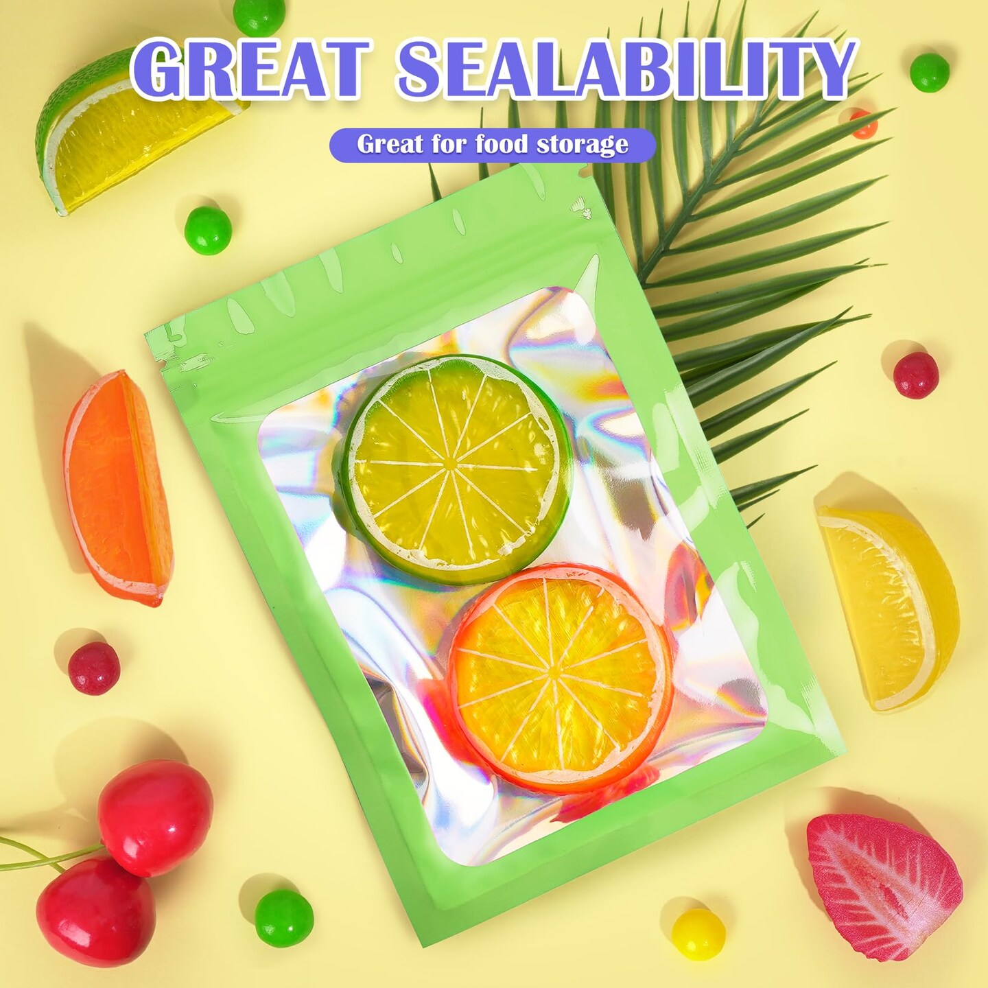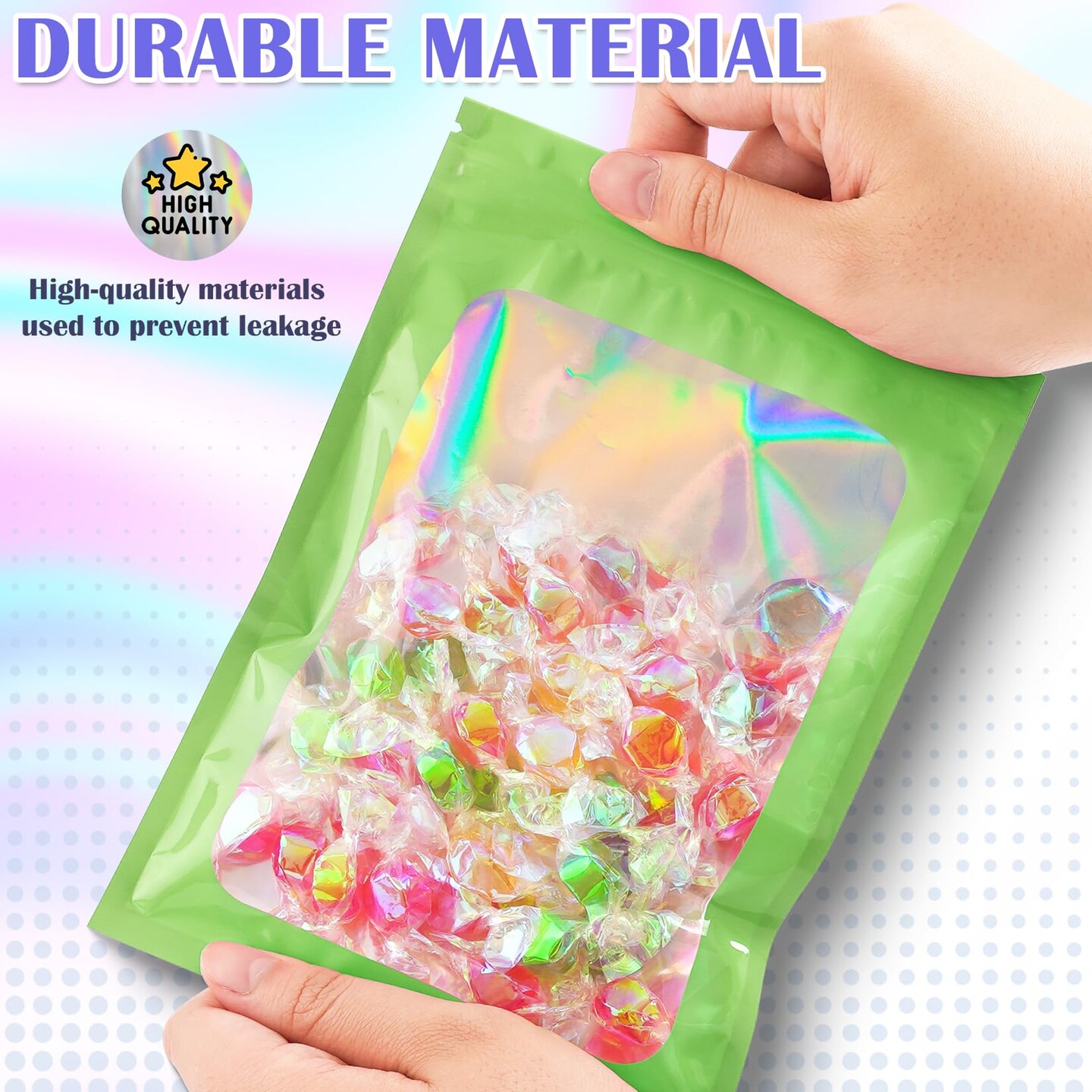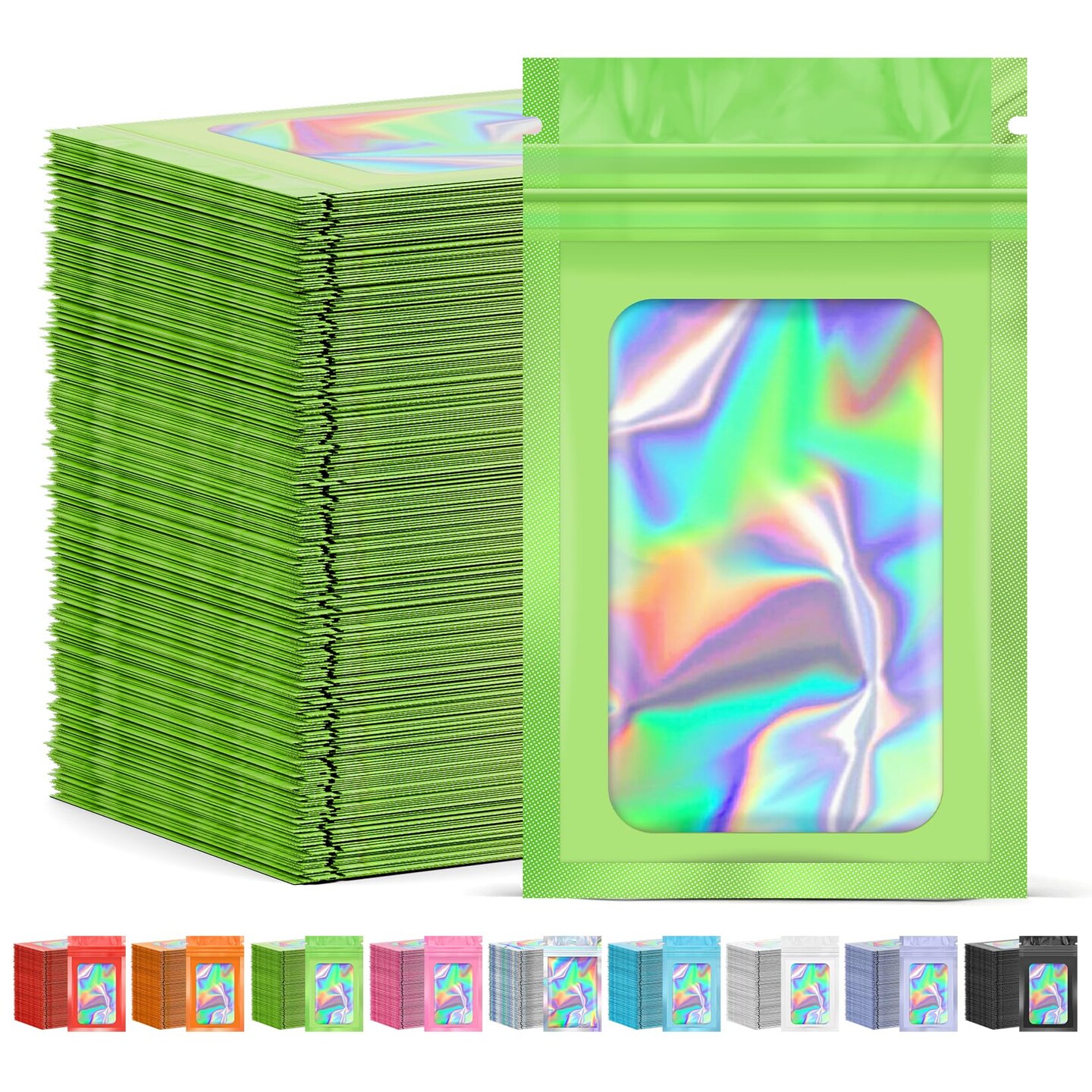 300 Pcs Mylar Bags, Smell Proof Bags Foil Pouch, Holographic Resealable Bags for Small Business, Candy Sample Jewelry Bag Sealable Packaging for Party Favor Food Storage (2.4x3.9in-Green)