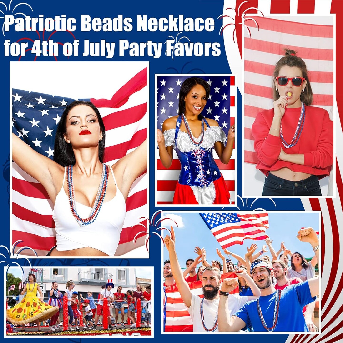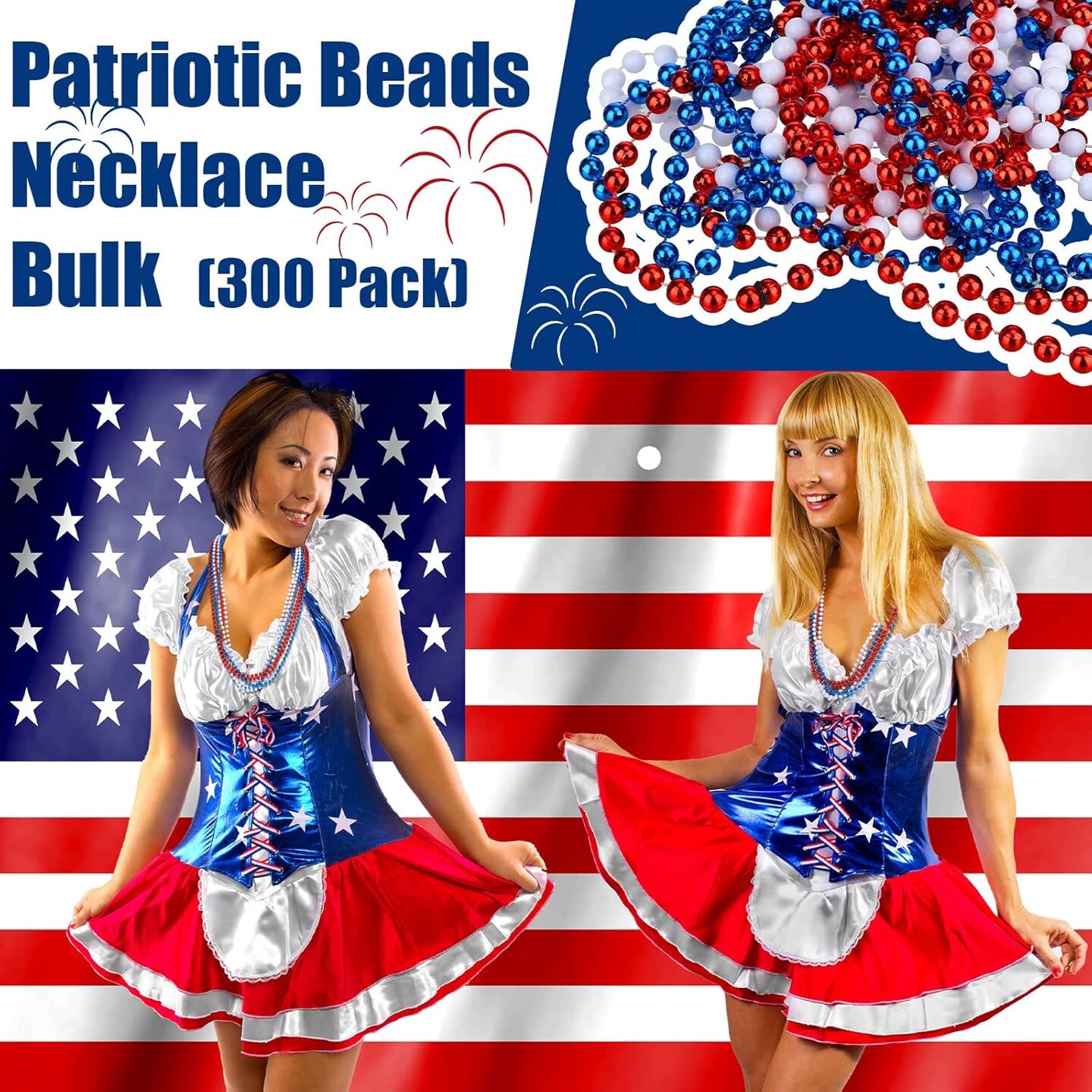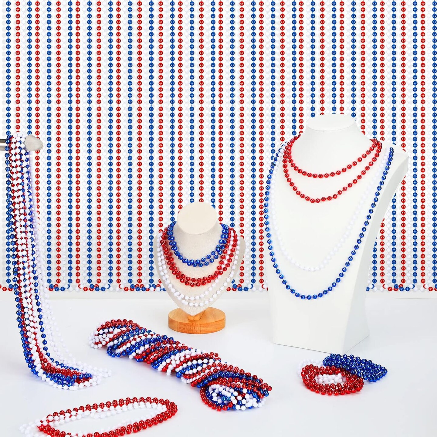 300 Pcs Patriotic Beads 4th of July Beads Bulk Independence Day Beads Necklaces Plastic Red White Blue Beads Memorial Day Necklaces