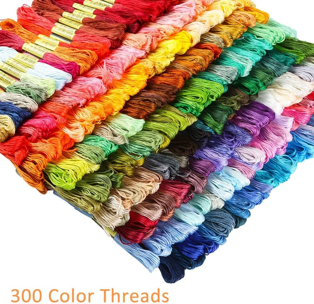300 Skeins Rainbow Embroidery Floss – Colorful Thread for Friendship Bracelets, Cross Stitch, Needlework, DIY Crafts with 20 Floss Bobbins