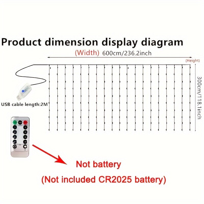 300LED Fairy Curtain Light, Curtain String Light USB Power Supply 8 Flashing Modes (Warm White)