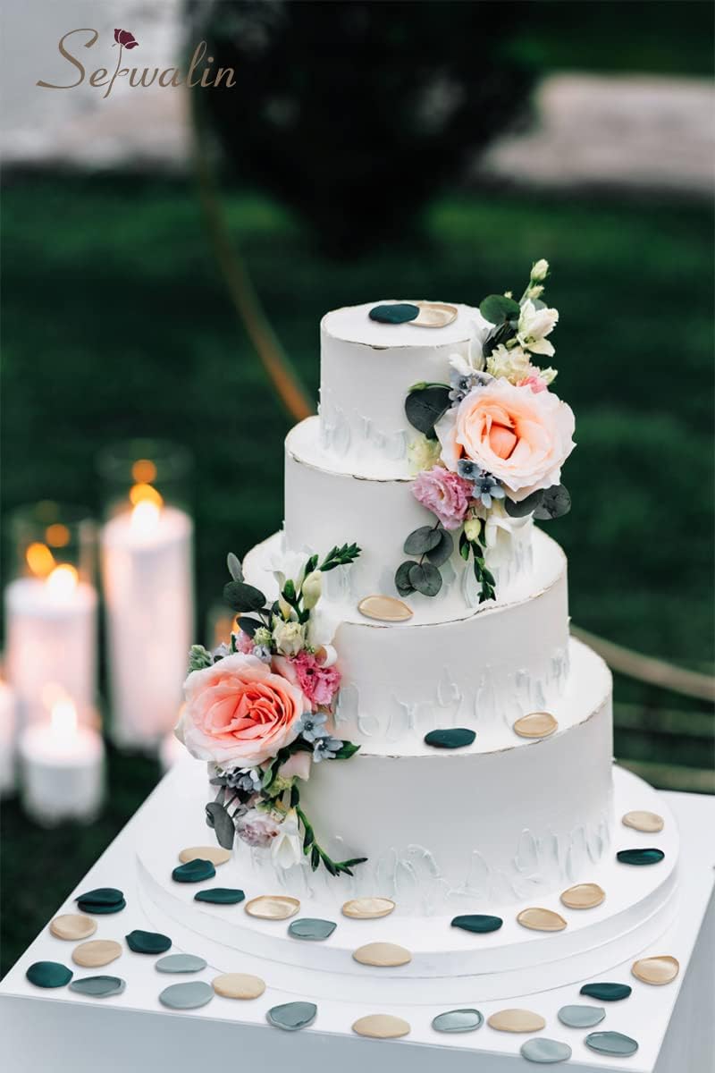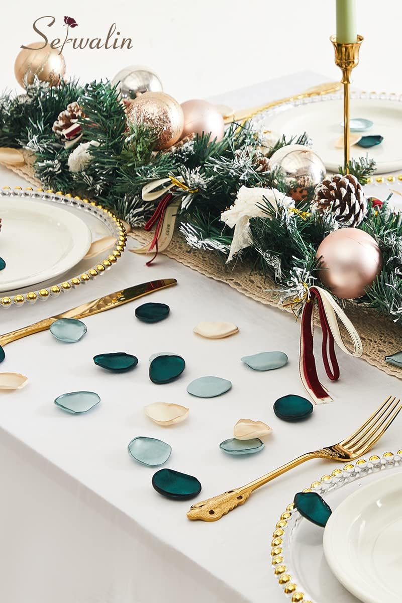 300Pcs Silk Rose Petals Flower Petals for Christmas Weddings Proposal Green Gold Petals Flower Girl Petals Aisle Flower Girl Basket Runner Bridal Shower Table Decor