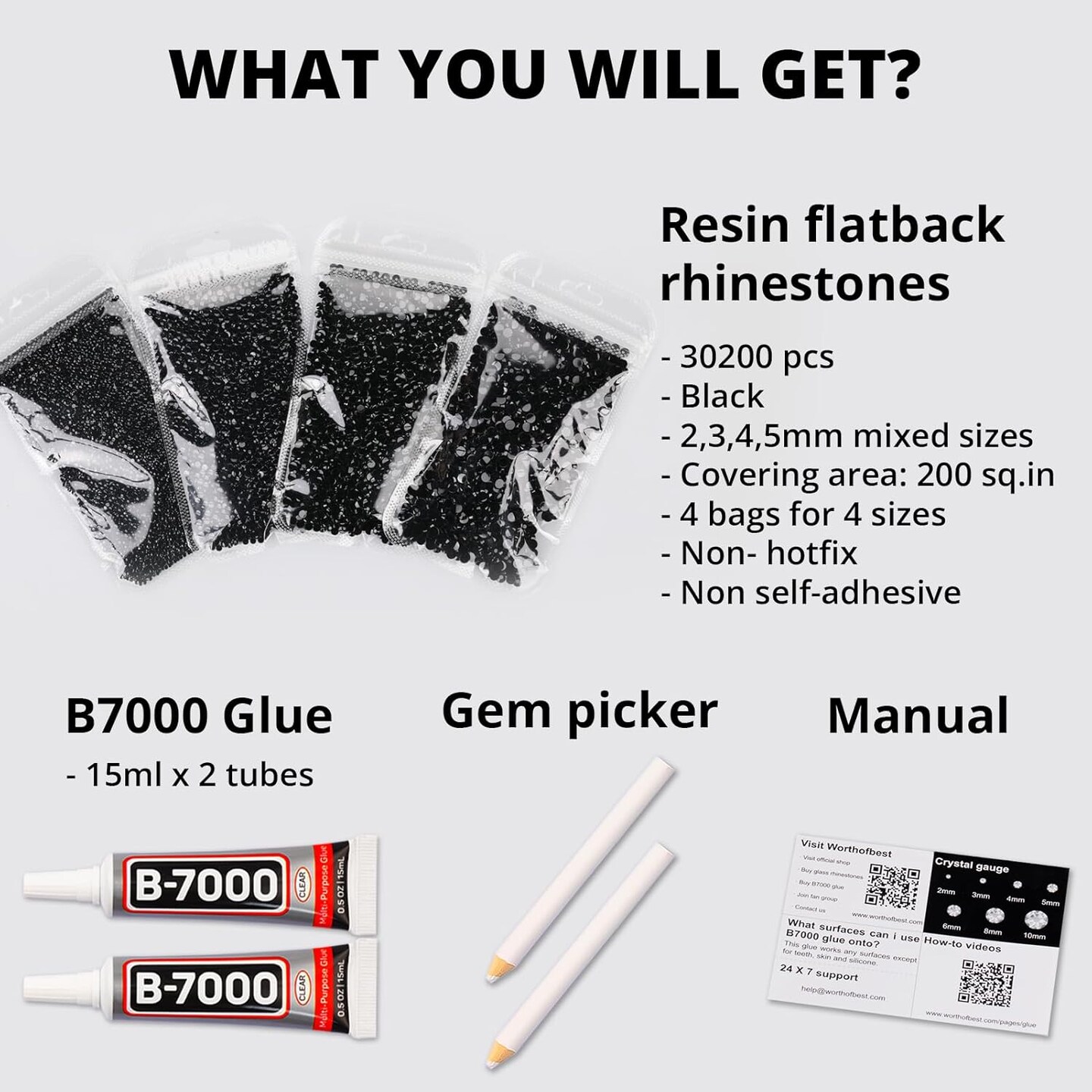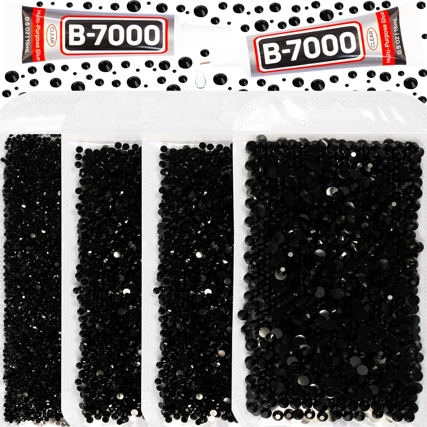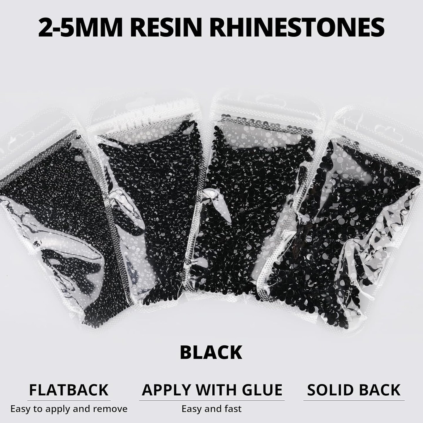 30,200pcs Black Resin Rhinestones – Flatback Gems with B7000 Glue, 2/3/4/5mm for DIY Crafts, Clothing, Fabric, Shoes, Bows, Bedazzling, and Jewelry Projects