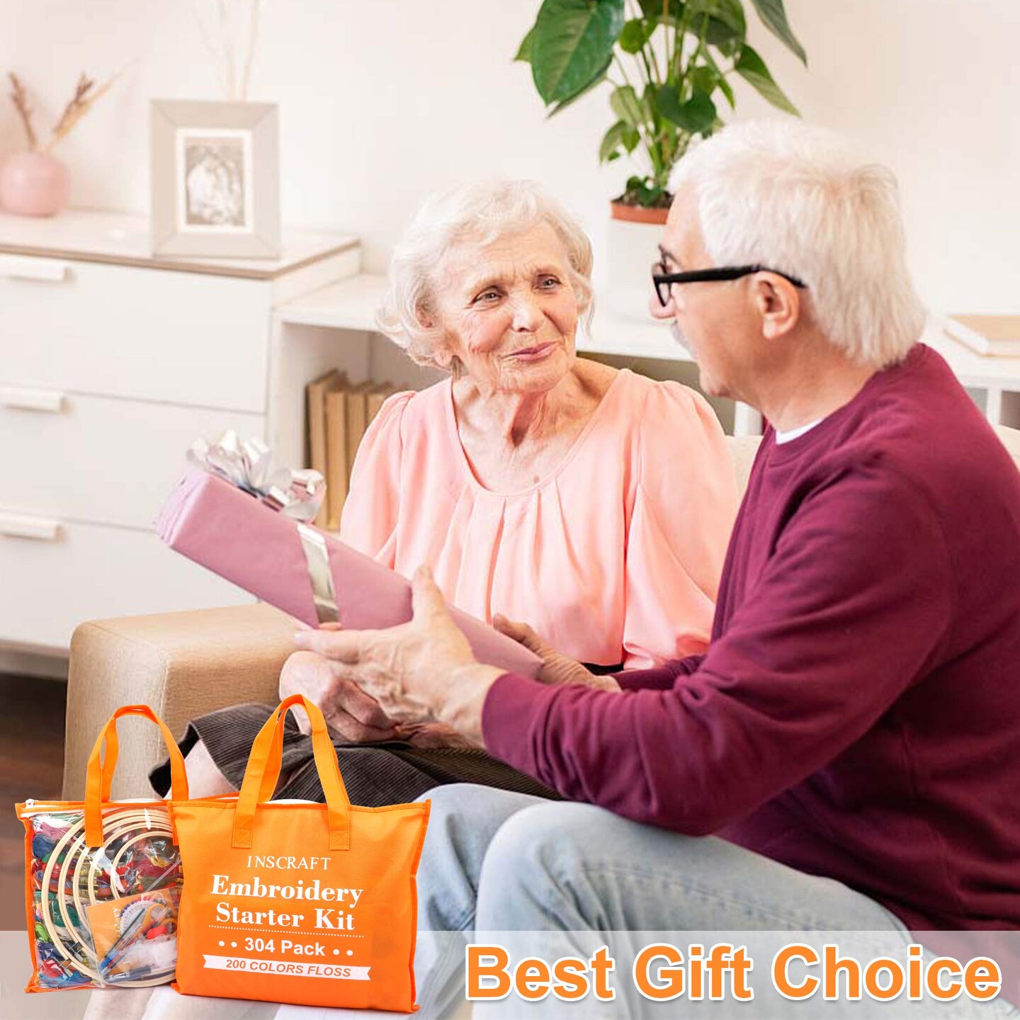304 Pack Embroidery Kit, 200 Colors Threads, 5 Pcs Bamboo Embroidery Hoops, 2 Pcs Aida Cloth, Instructions, Bag and Cross Stitch Tools Set, Hand Embroidery Starter Kit for Beginners Adults