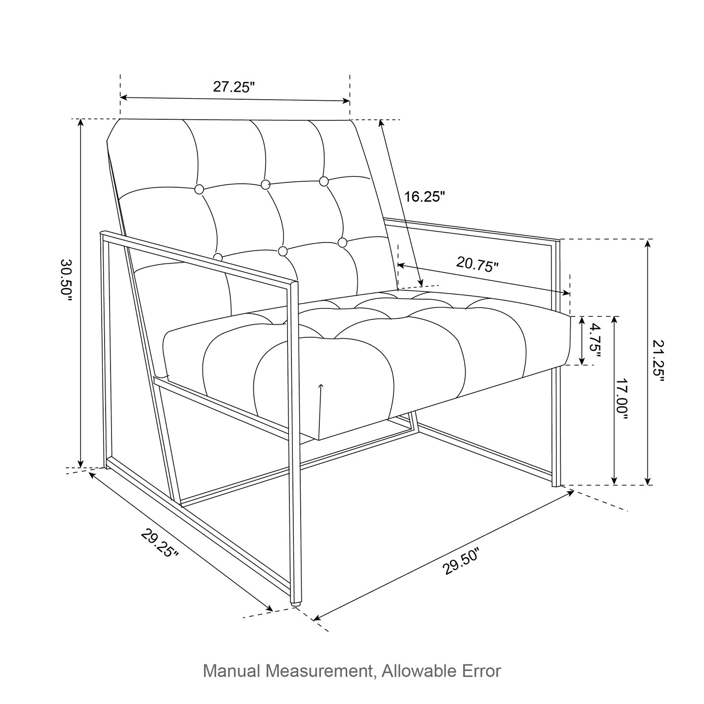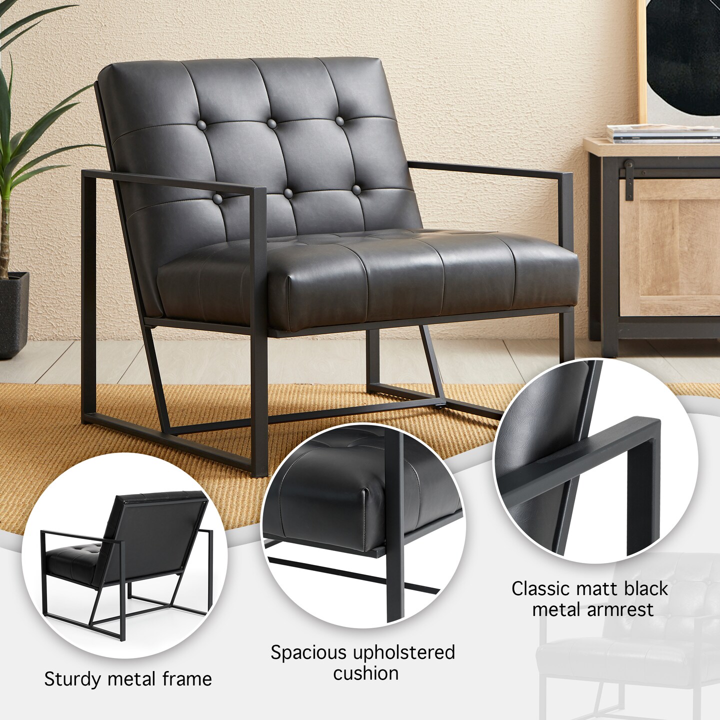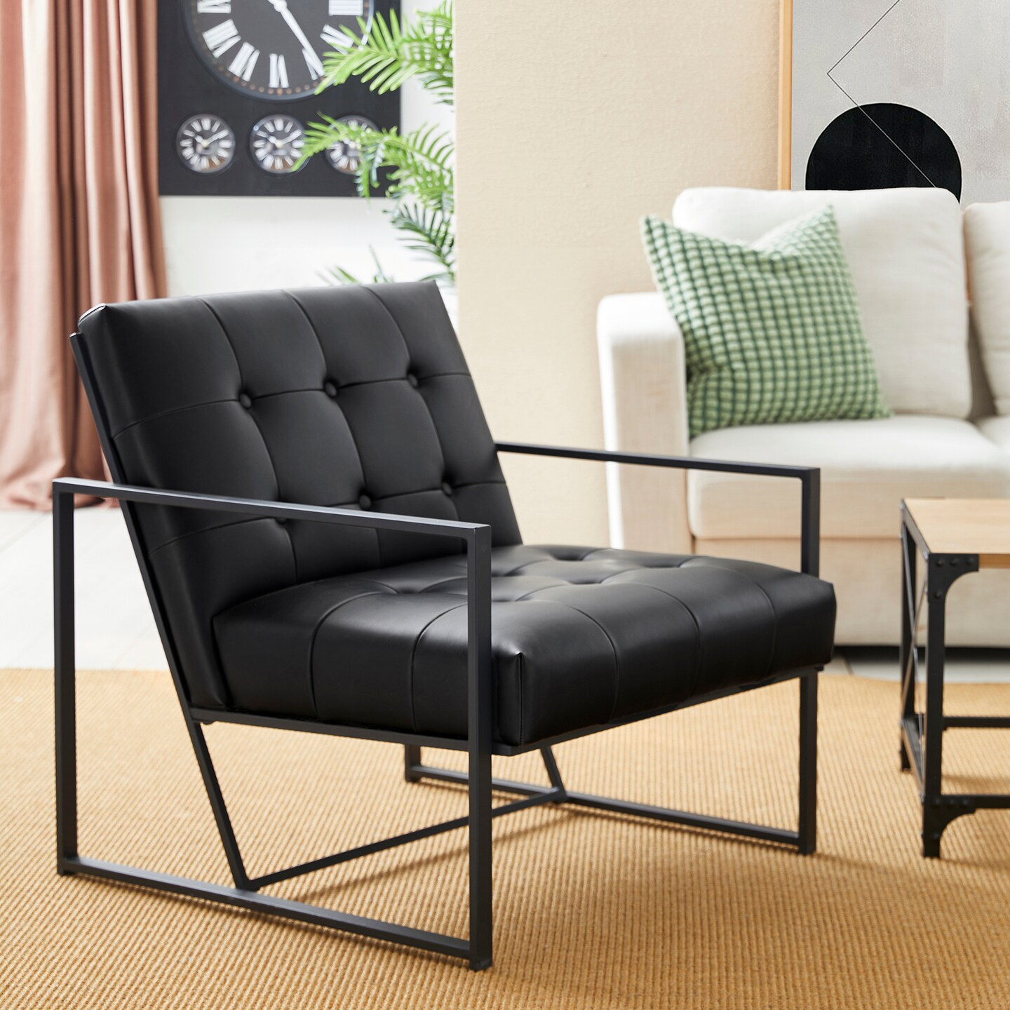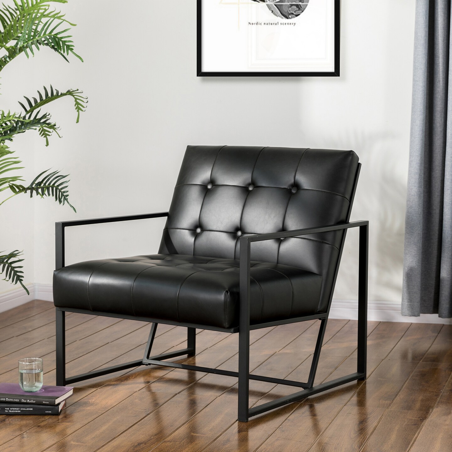 30.5"H Mid-Century Modern Leatherette Button-tufted Accent Arm Chair with Black Metal Frame