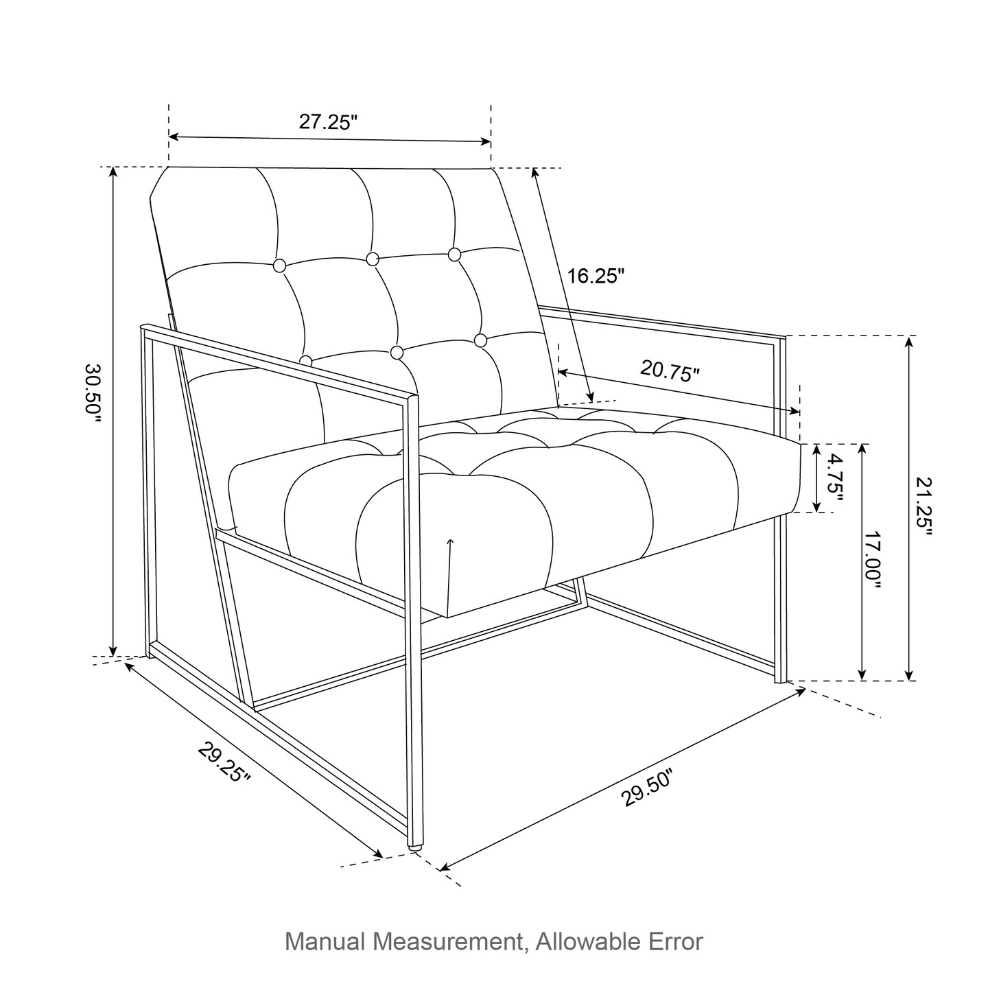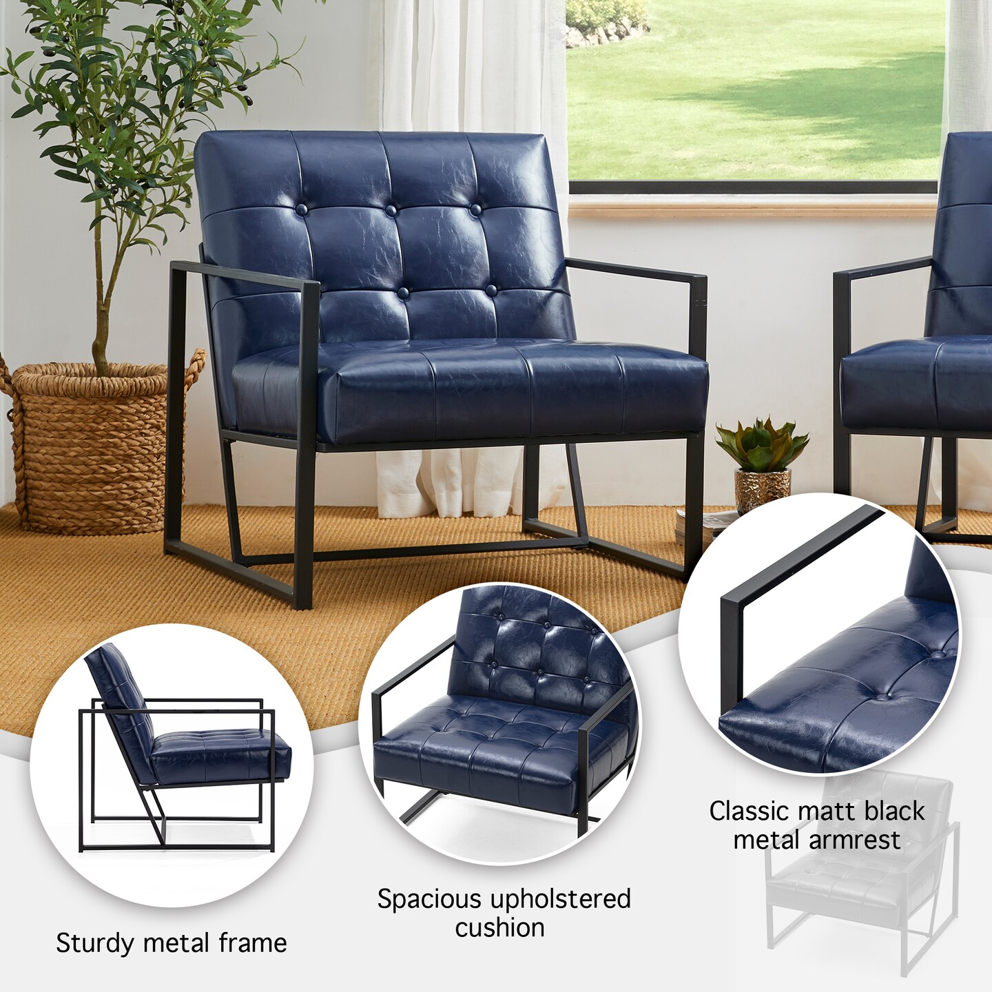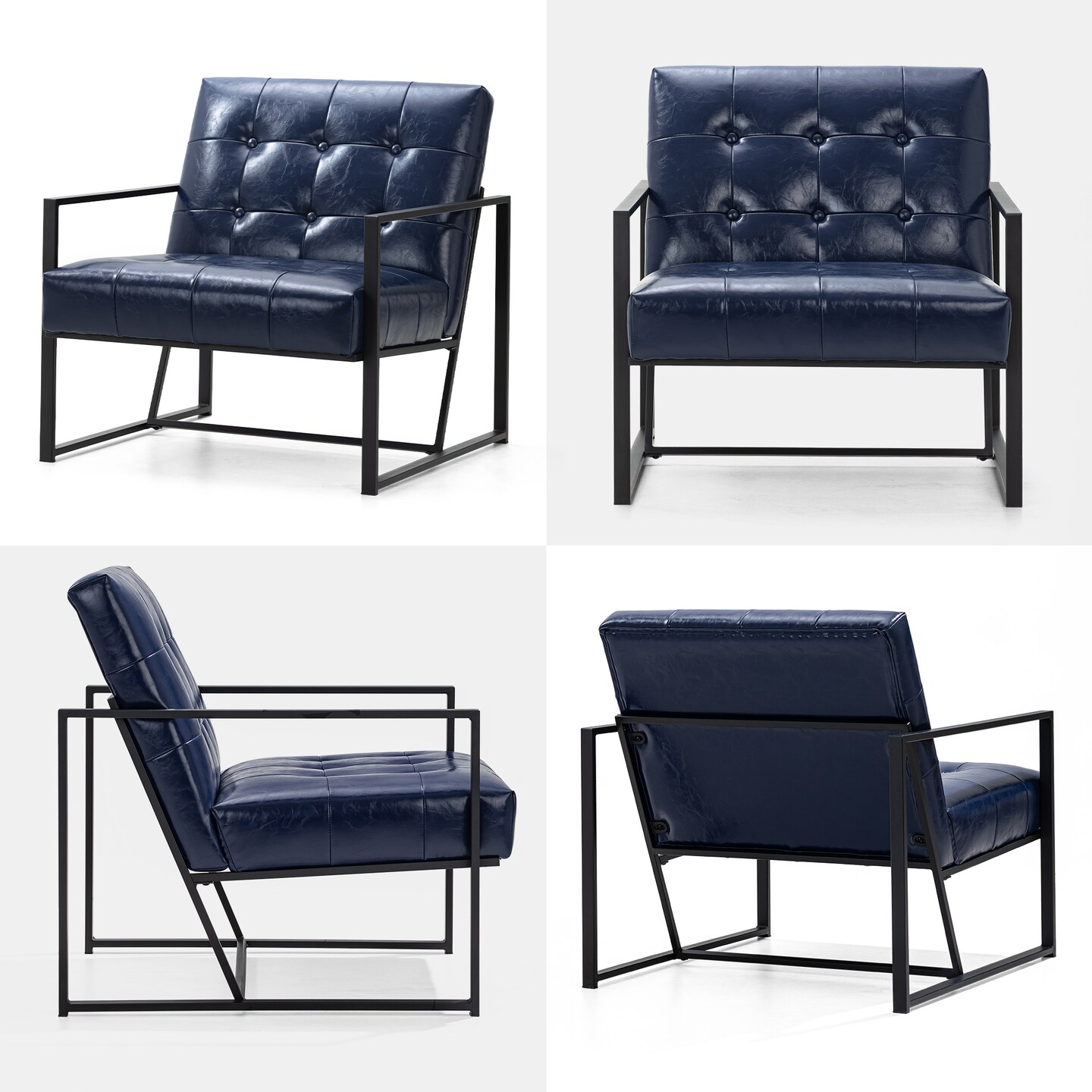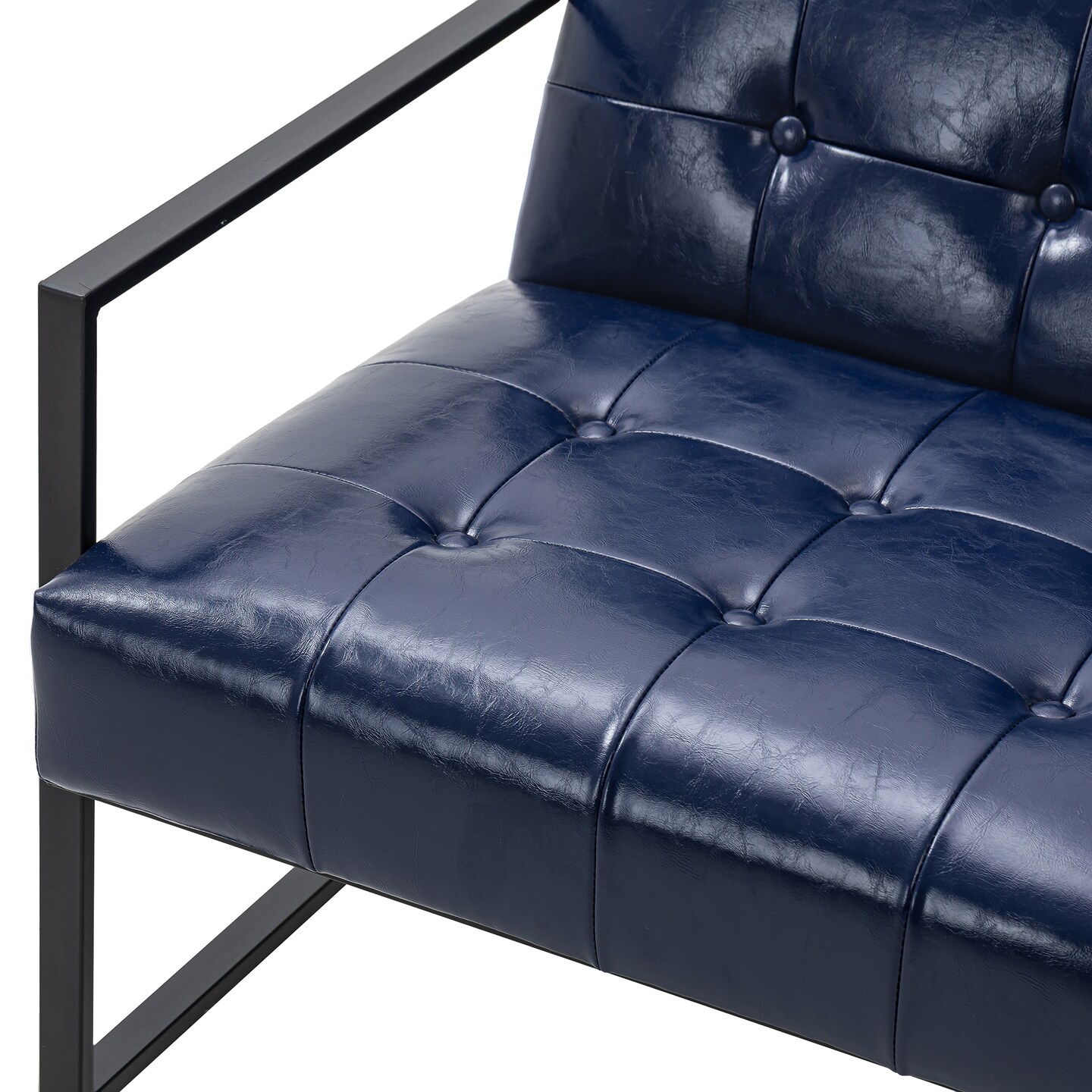 30.5"H Mid-Century Modern Leatherette Button-tufted Accent Arm Chair with Black Metal Frame