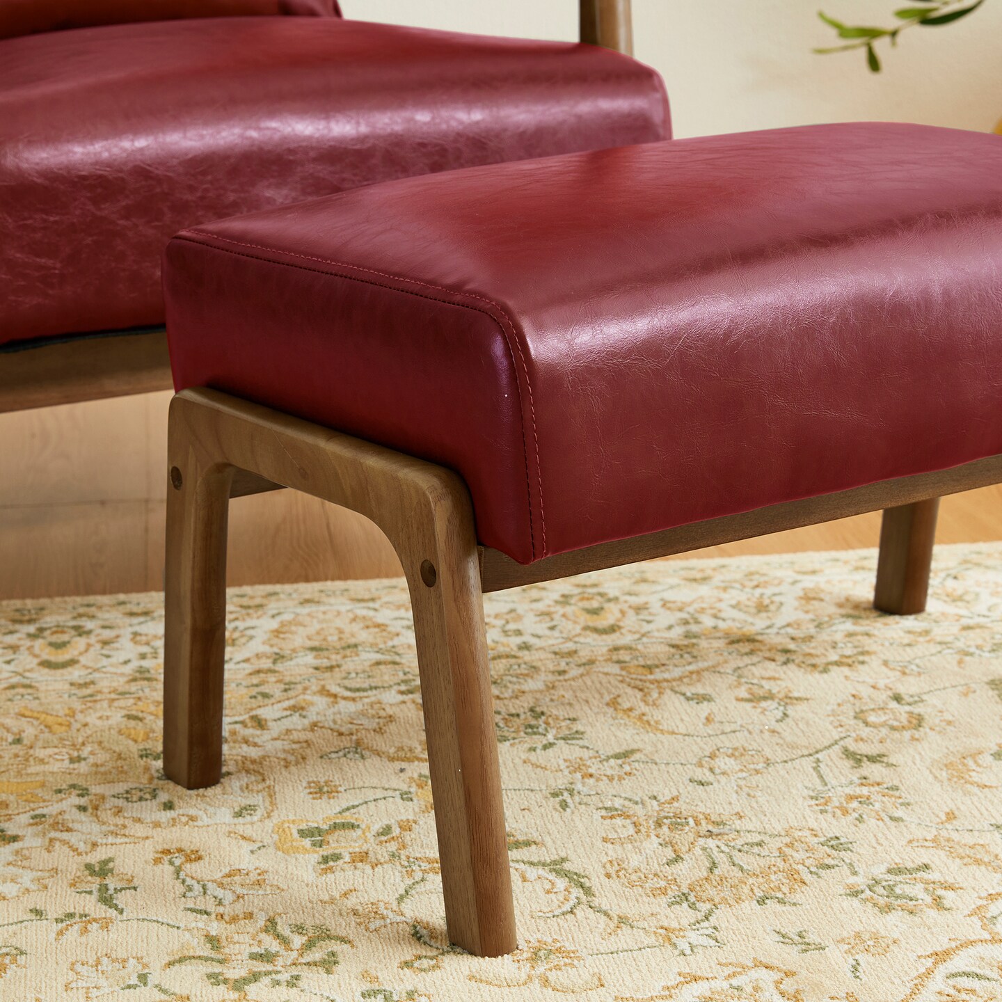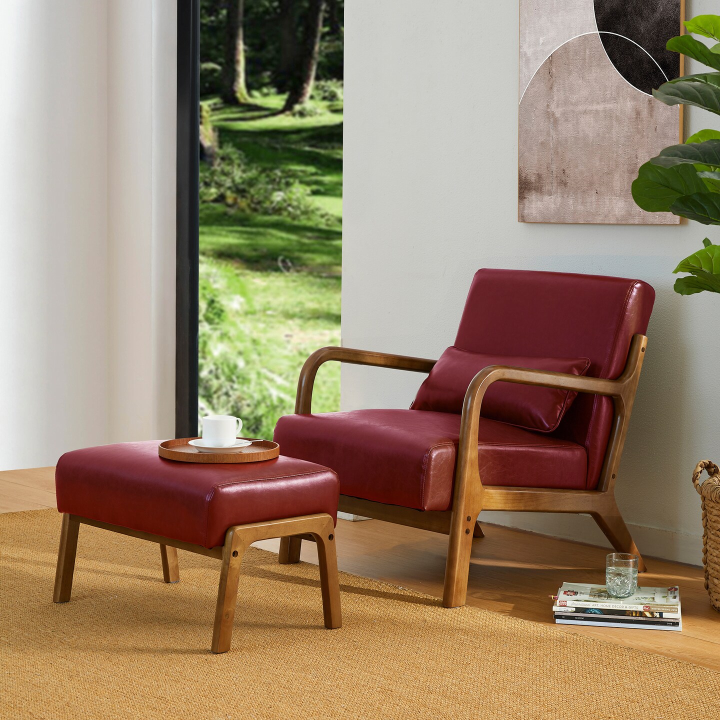 30.75"H Mid-Century PU Leather Armchair with Ottoman Set