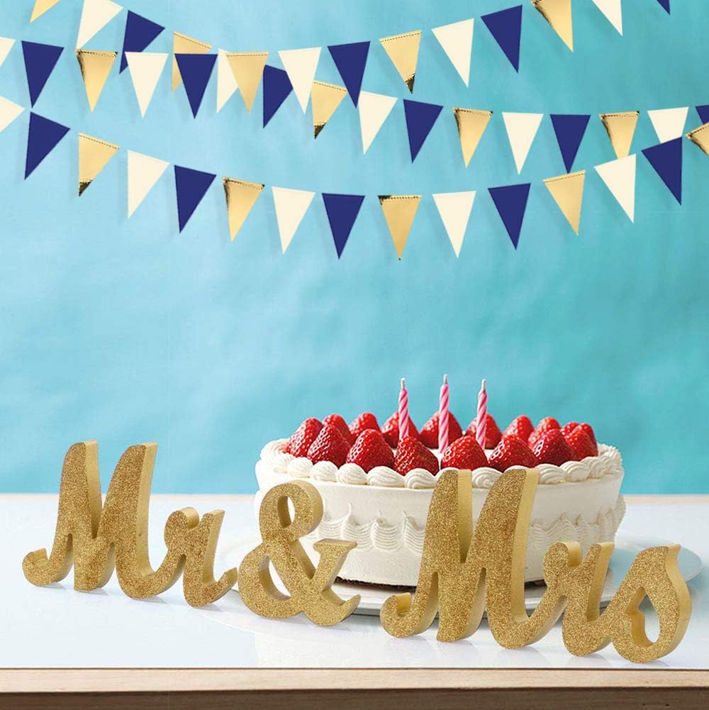 30Ft Navy Blue Gold and Beige Party Decorations Royal Blue Gold Triangle Flag Pennant Banner Bunting for Graduation Birthday Wedding Bridal Shower Nautical Ahoy Achor Theme Party Decorations Supplies