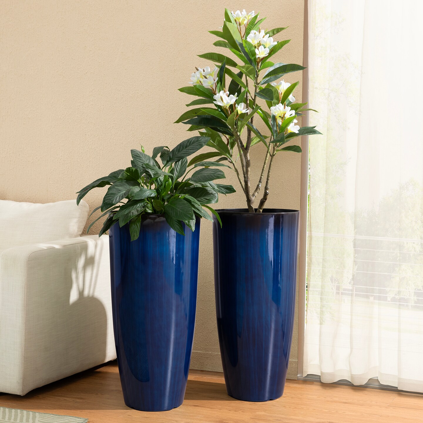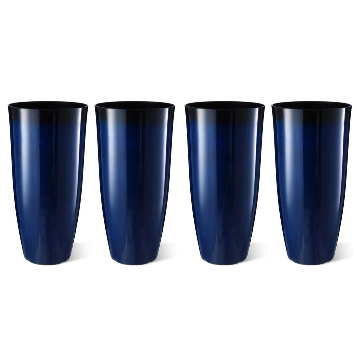 30"H Set of 4 Oversized Gradient Cobalt Blue Faux Ceramic Tall Plastic Planter