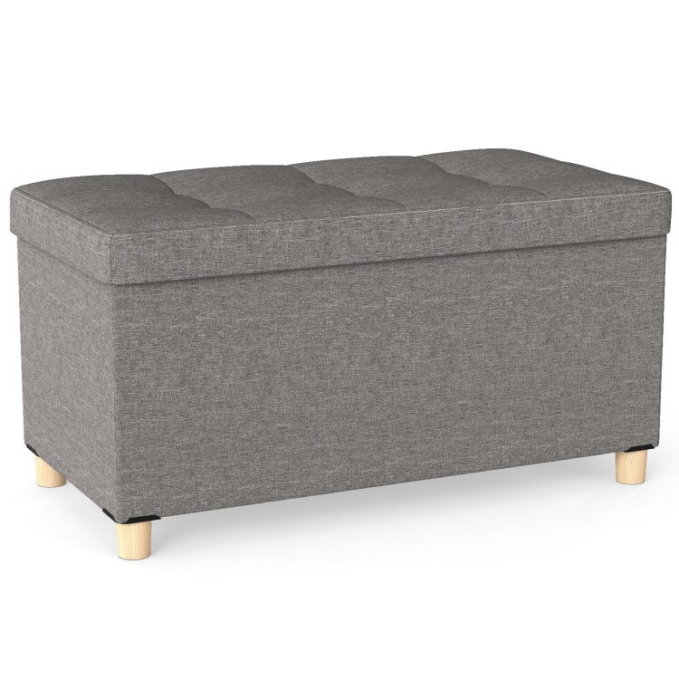 30in Storage Ottoman Bench with Tray and Rubber Wood Legs