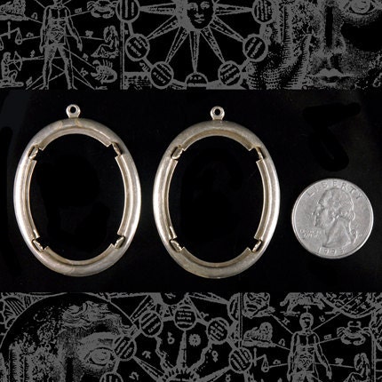 30mm x 40mm Antiqued Silver Plated Brass Cameo Frames - Set of Two - S-F05