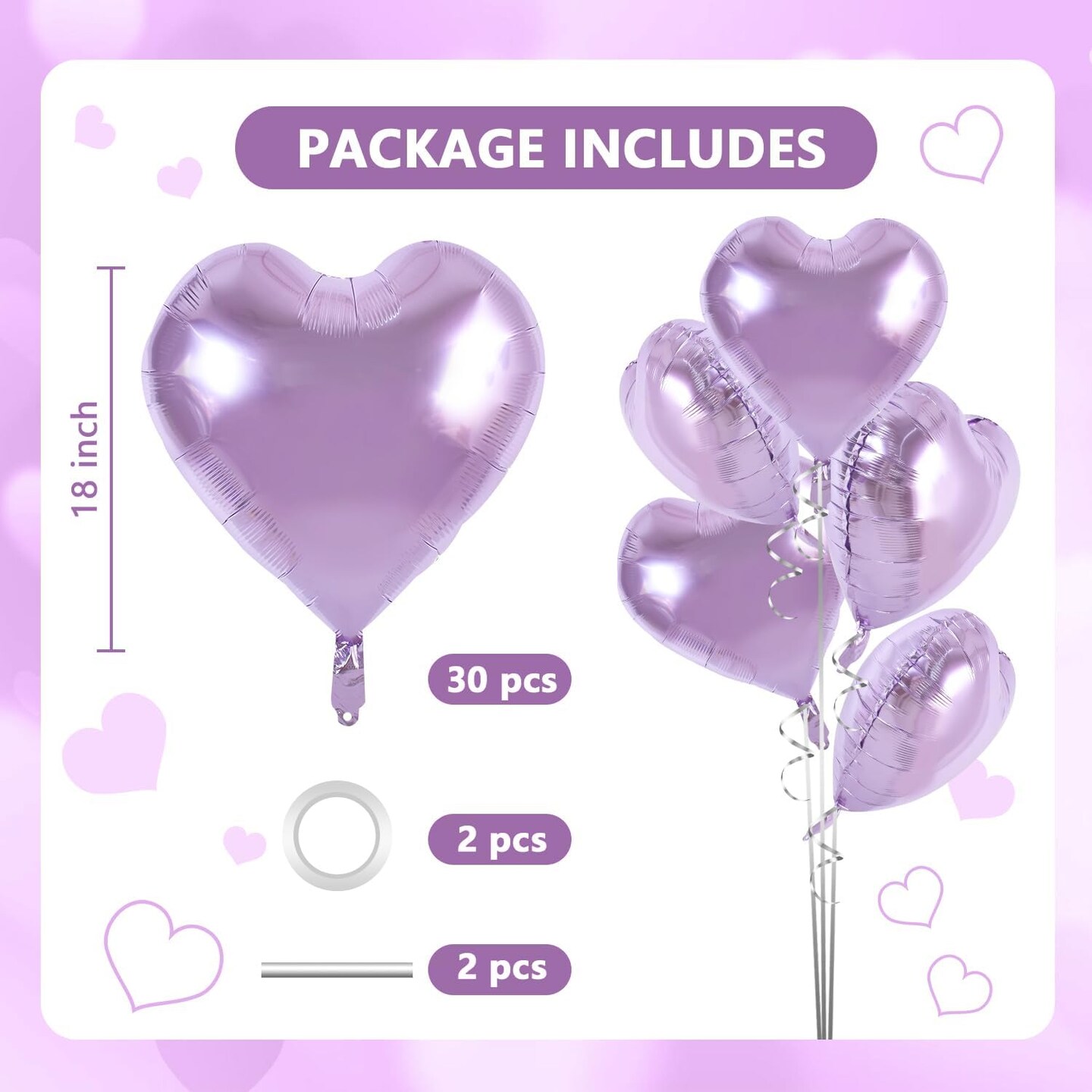 30-Pack 18in Purple Heart Foil Balloons – Party Decor for Birthday, Valentine’s & Wedding