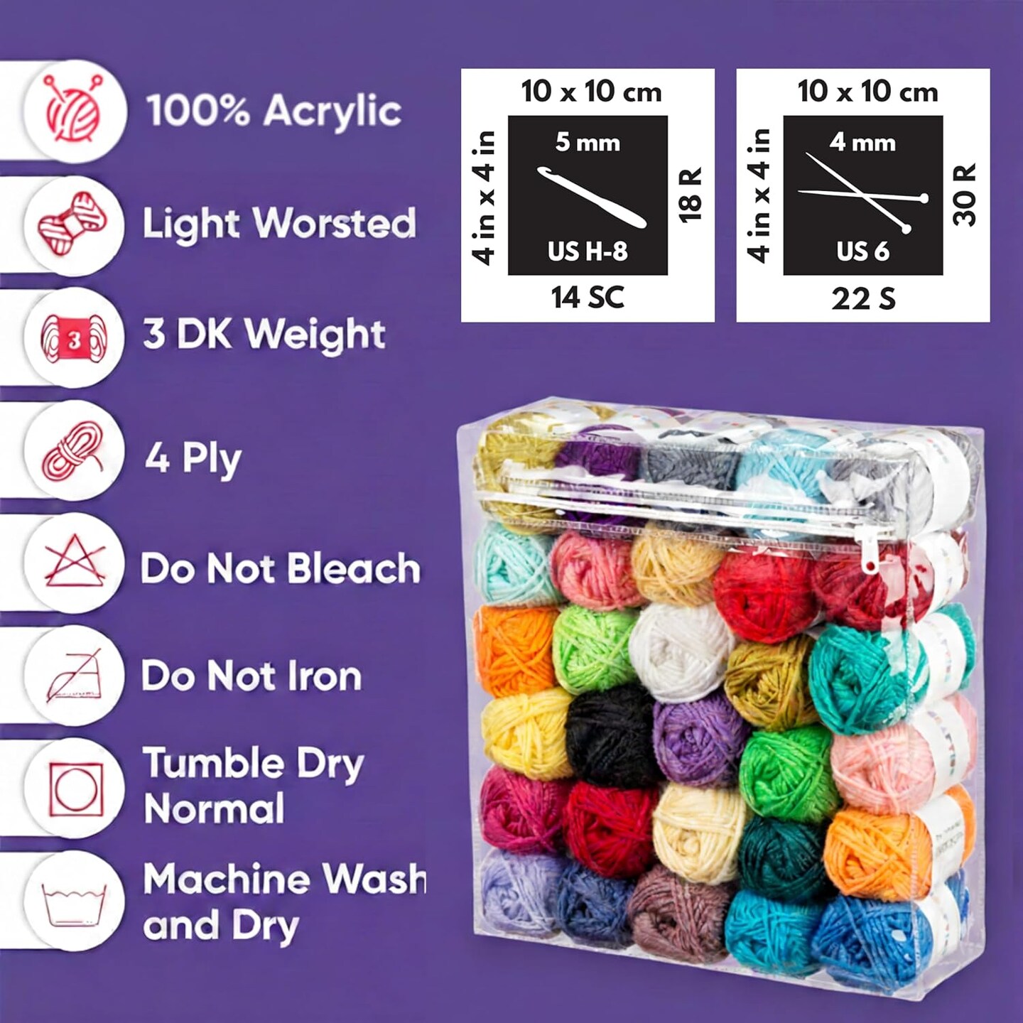 30-Pack Mini Acrylic Yarn Skeins – 20g / 0.7oz Each, 1300 Yards Total, Soft DK Weight Yarn for Crocheting, Knitting & DIY Crafts – Assorted Colors Starter Kit for Adults & Kids