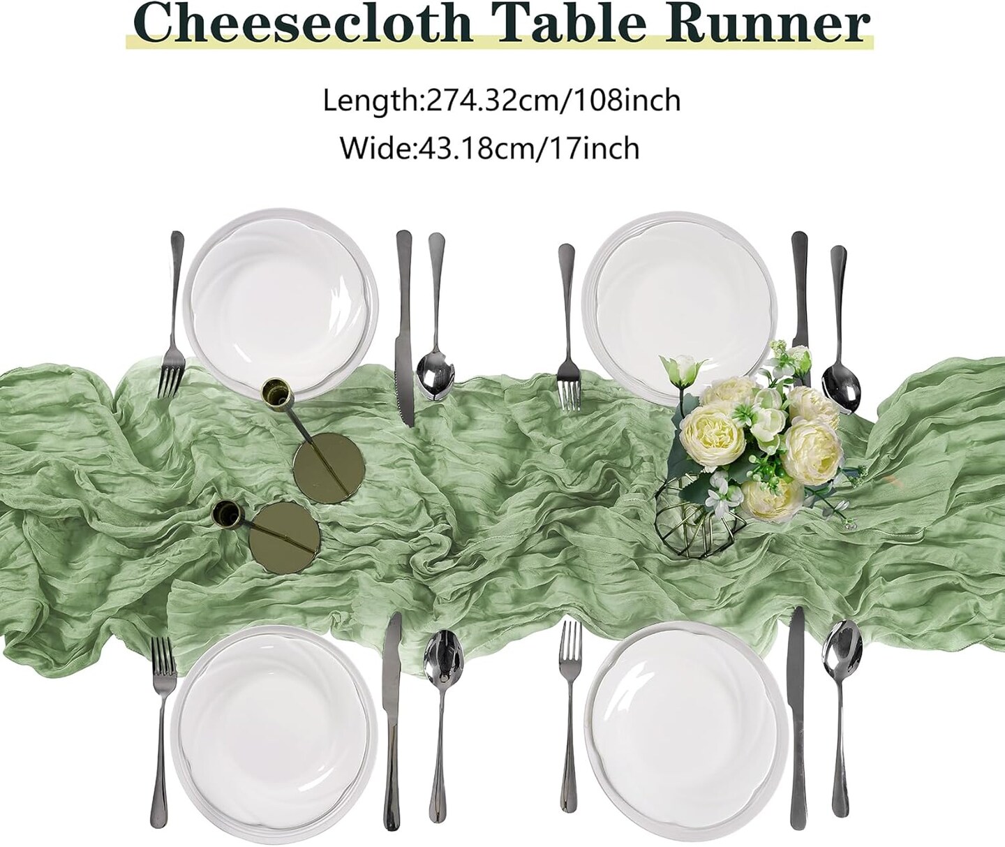 30-Pack Sage Green Cheesecloth Table Runner, 17x108" for Weddings & Parties.