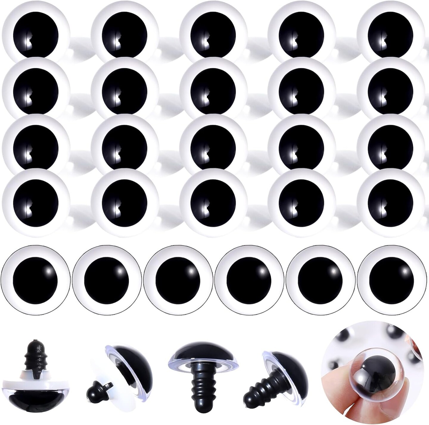 30PCS 18mm Clear Safety Eyes for Crocheting with Washers (5 Colors)