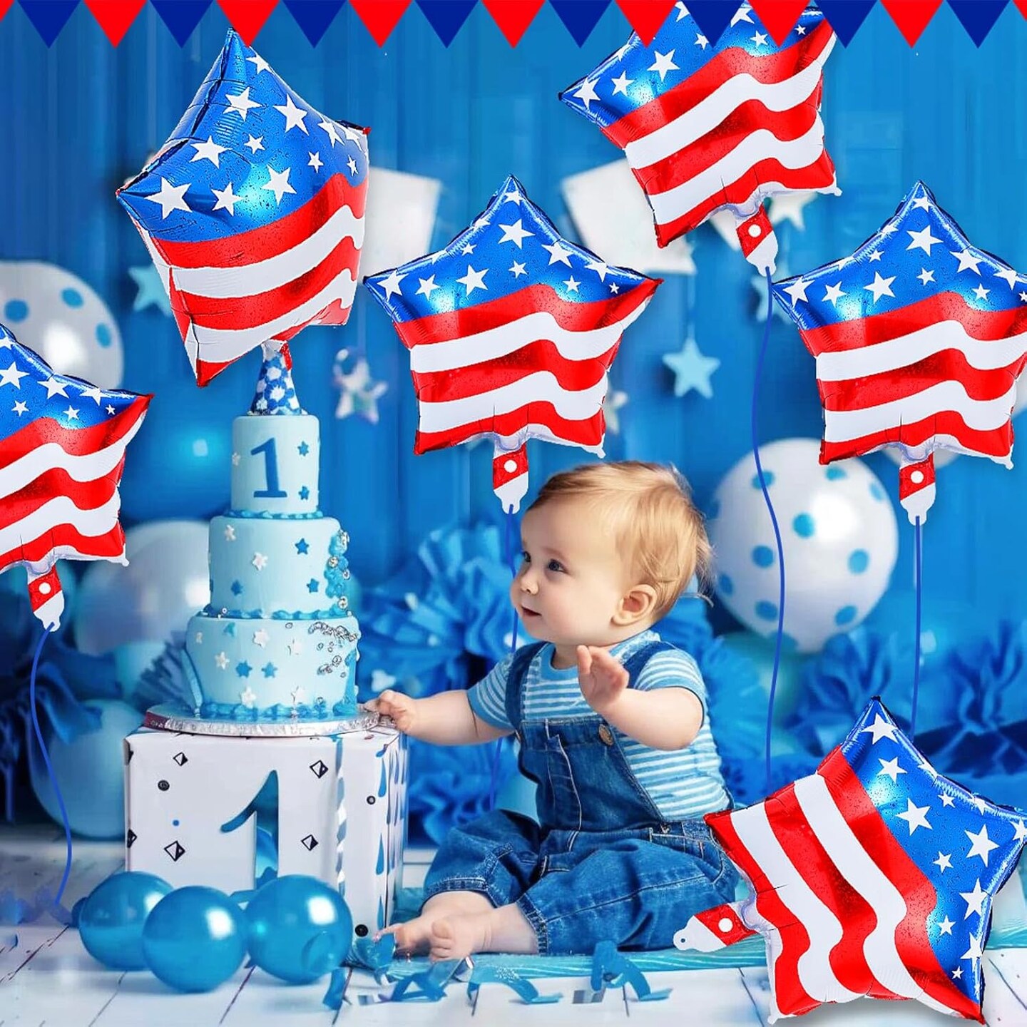 30Pcs 4th of July American Flag Balloons 18 inch Red White and Blue Star Foil Balloons