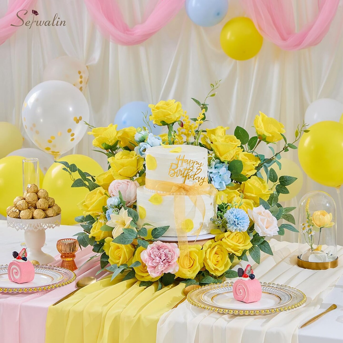 30pcs Artificial Yellow Roses Realistic Silk Roses Fake Long Stem