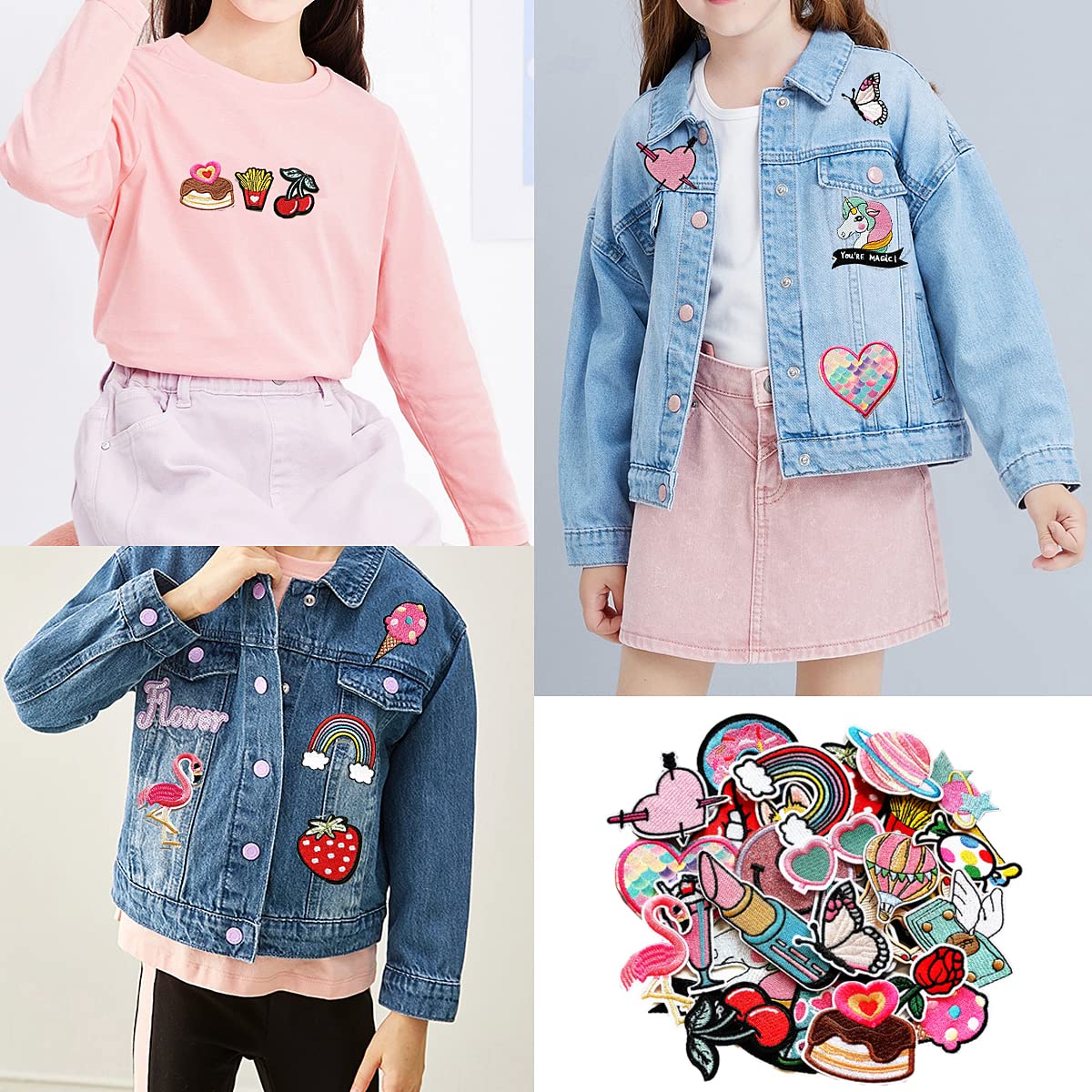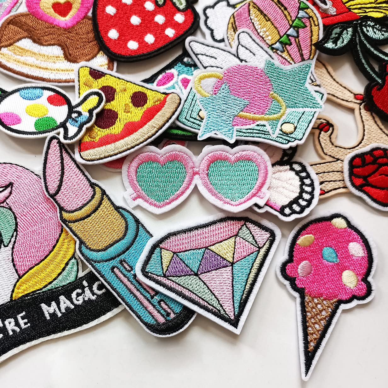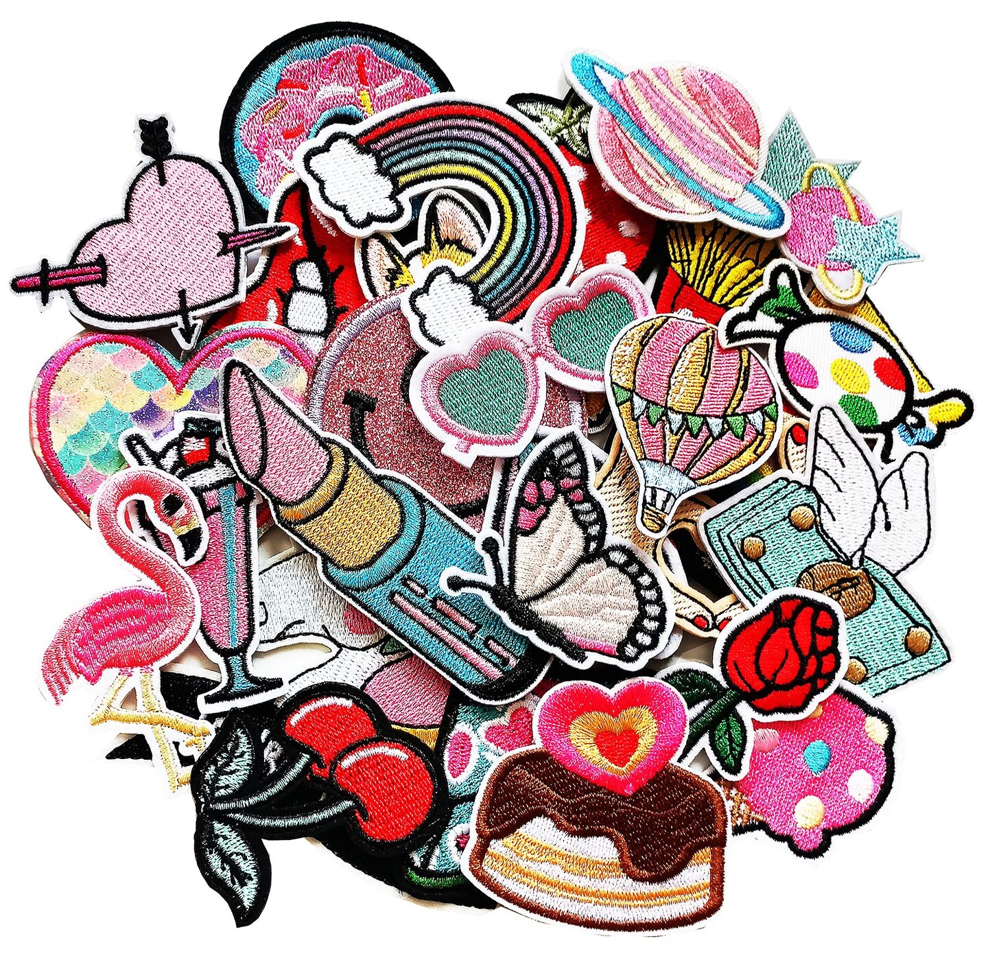 30pcs Girls Iron on Patches for Clothing Jackets DIY Sew Embroidered Applique Decorative Repair Patches