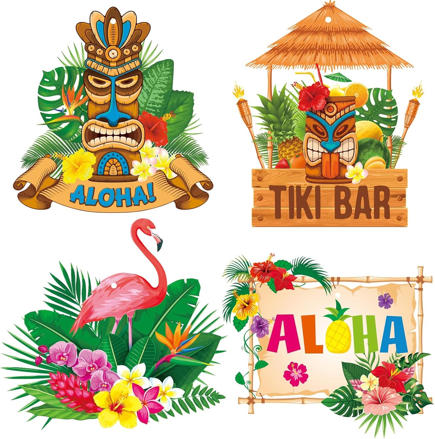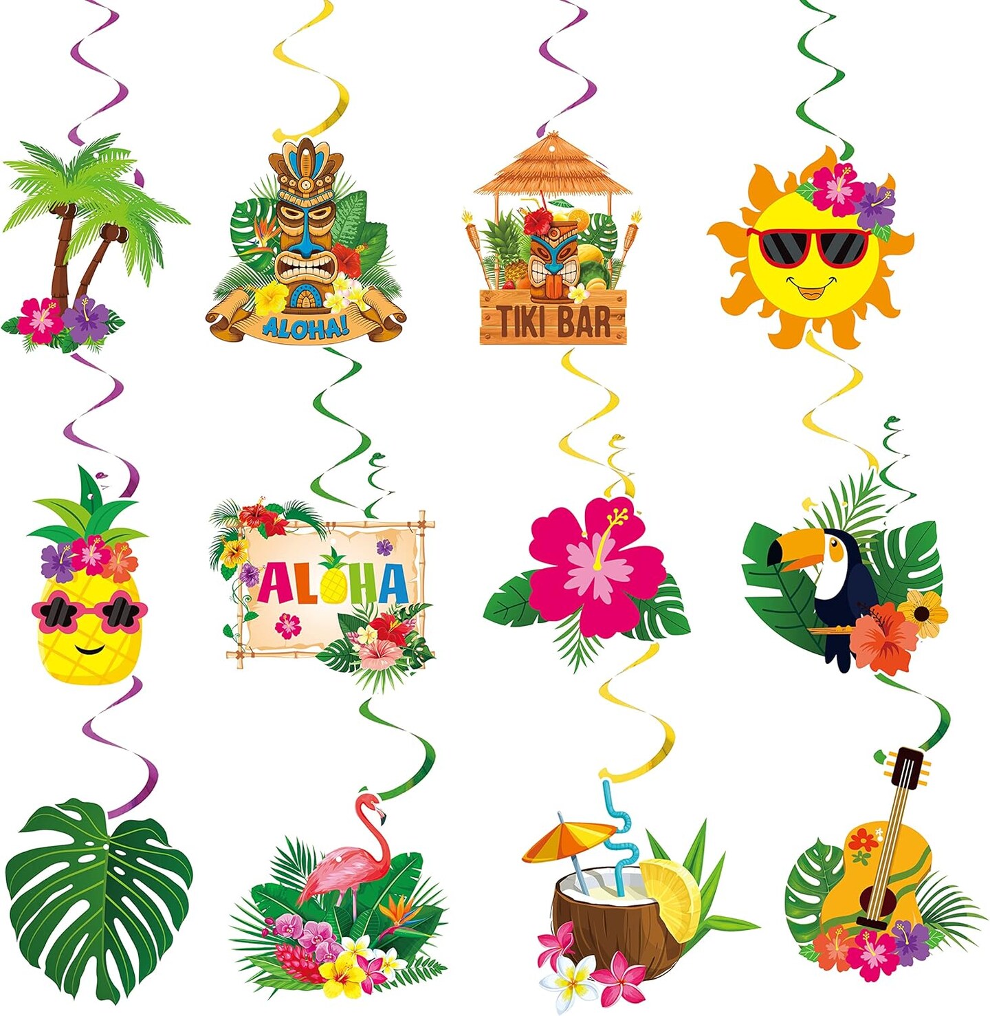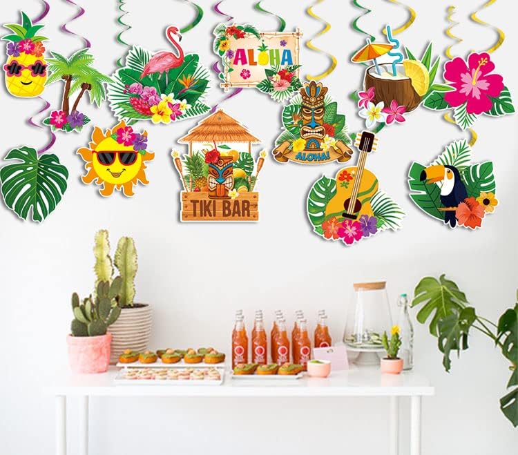 30pcs Luau Party Decorations Hawaiian Decorations Tiki Decorations Tropical Party Decorations Luau Hanging Swirls Aloha Party Decorations, Flower Palm Flamingo Sign Foil Ceiling Summer Decor