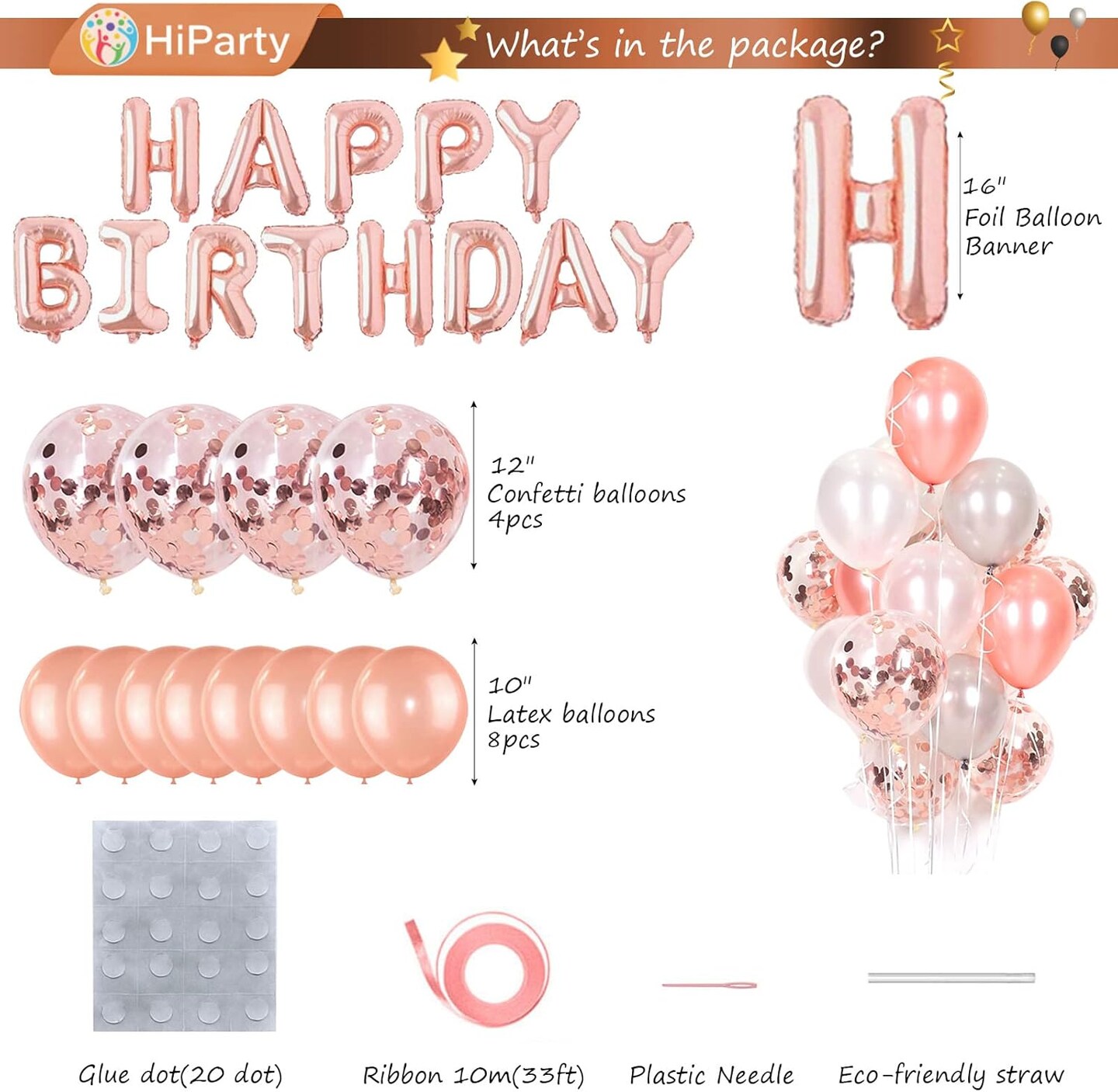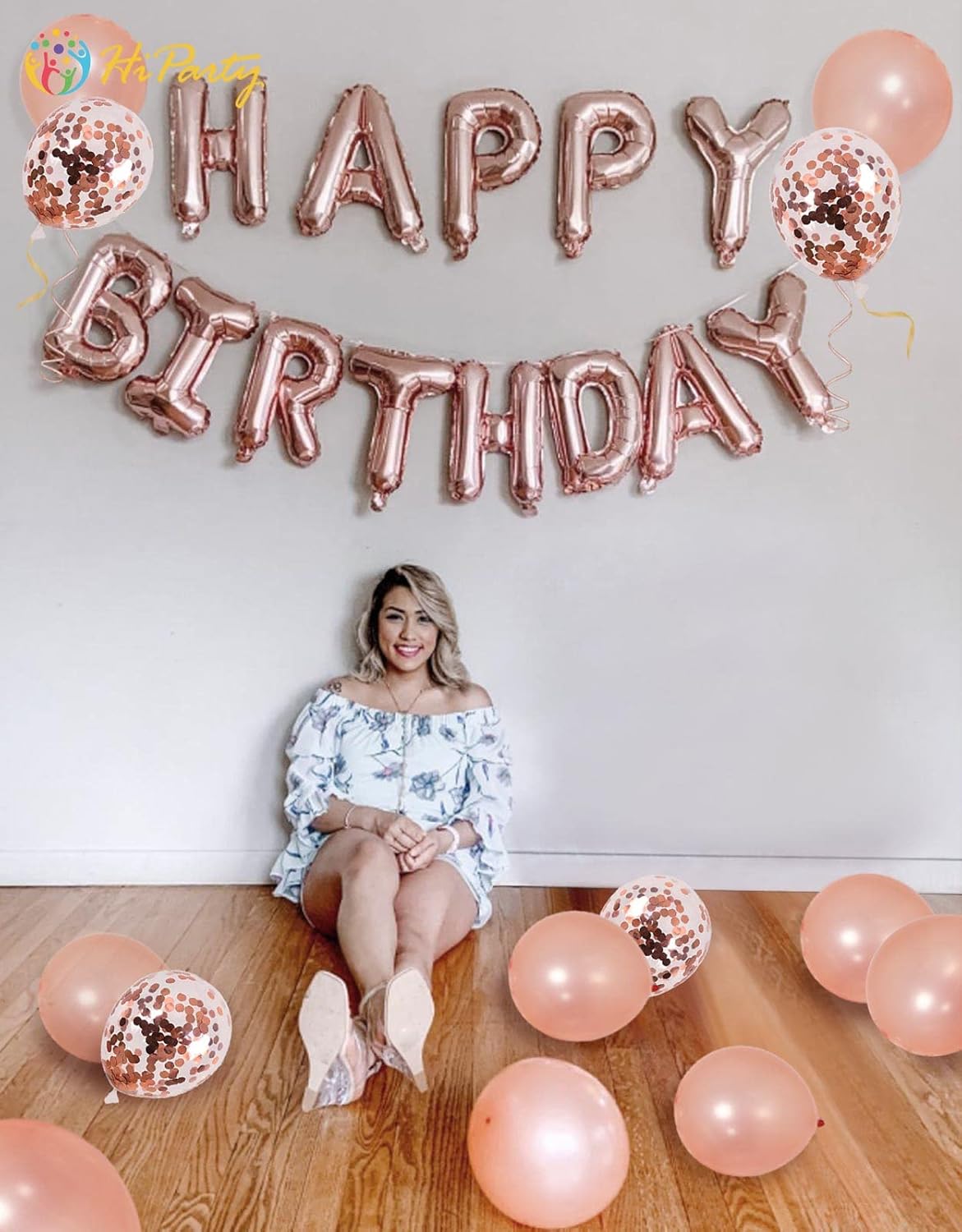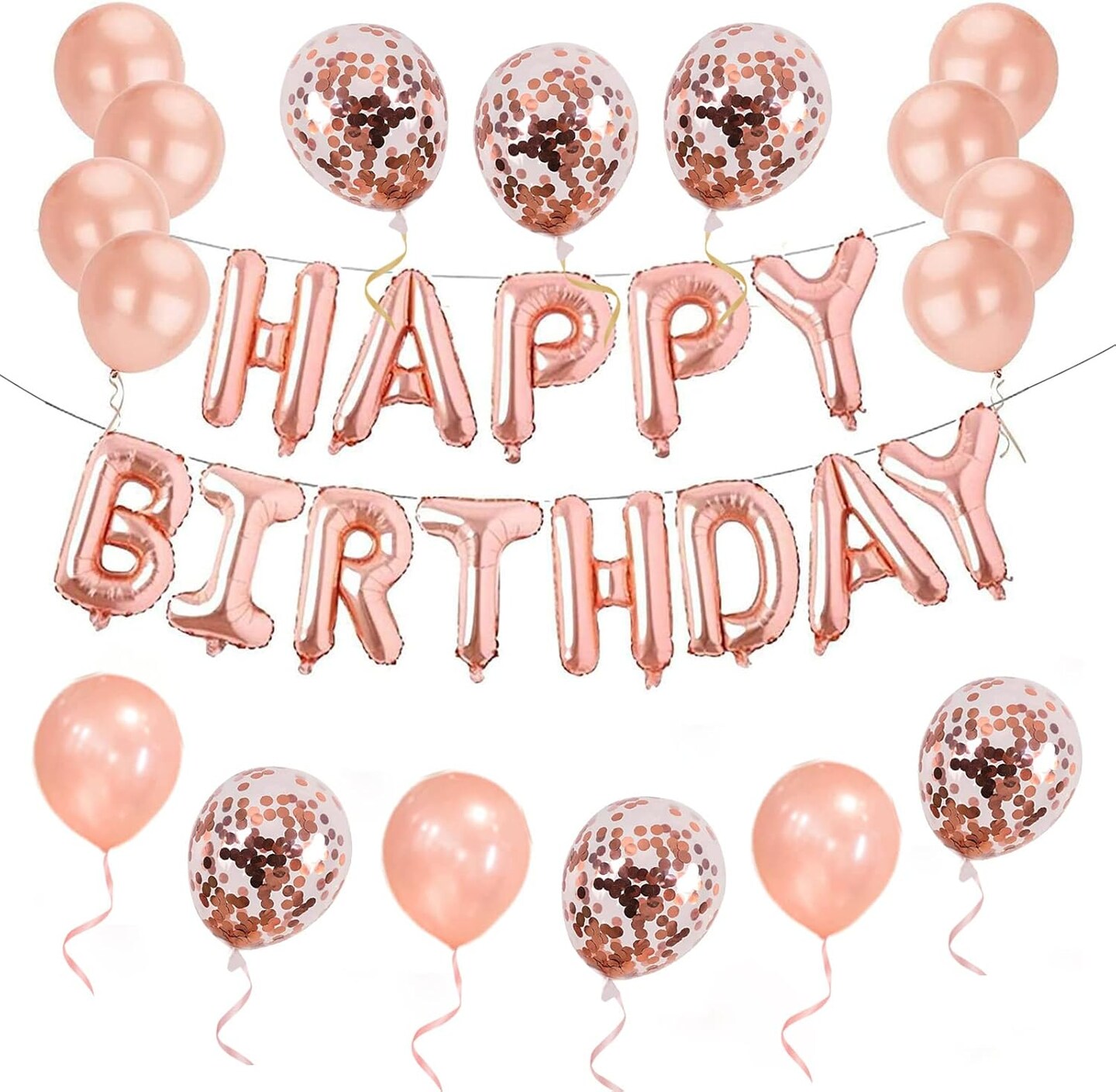 30pcs Pink Rose Gold Birthday Decorations | 3D Mylar Happy Birthday Banner & Confetti Latex Balloons | Party Supplies for Girls, Kids & Women (Rose Gold)
