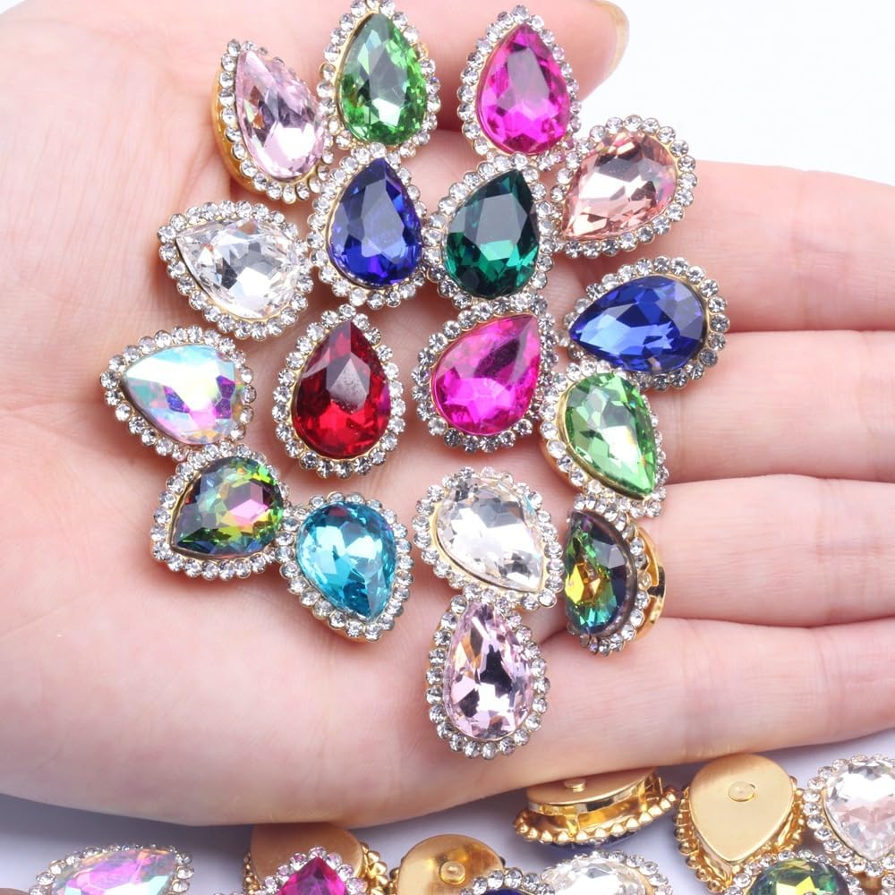 30Pcs Sew On Rhinestone Tear Drop Crystal Glass Rhinestone Metal (00 Mixed Color, 10 * 14mm)