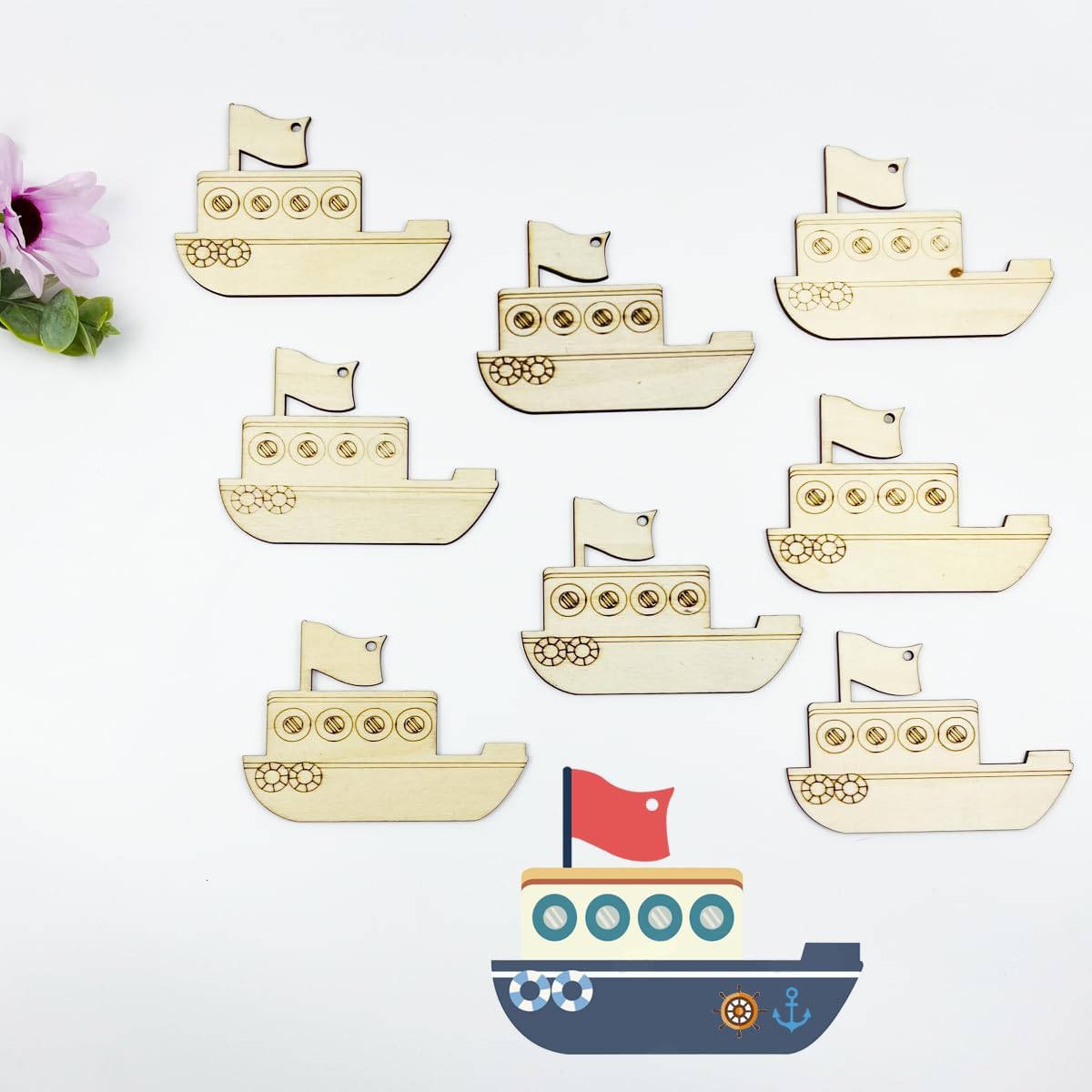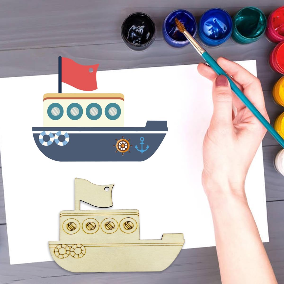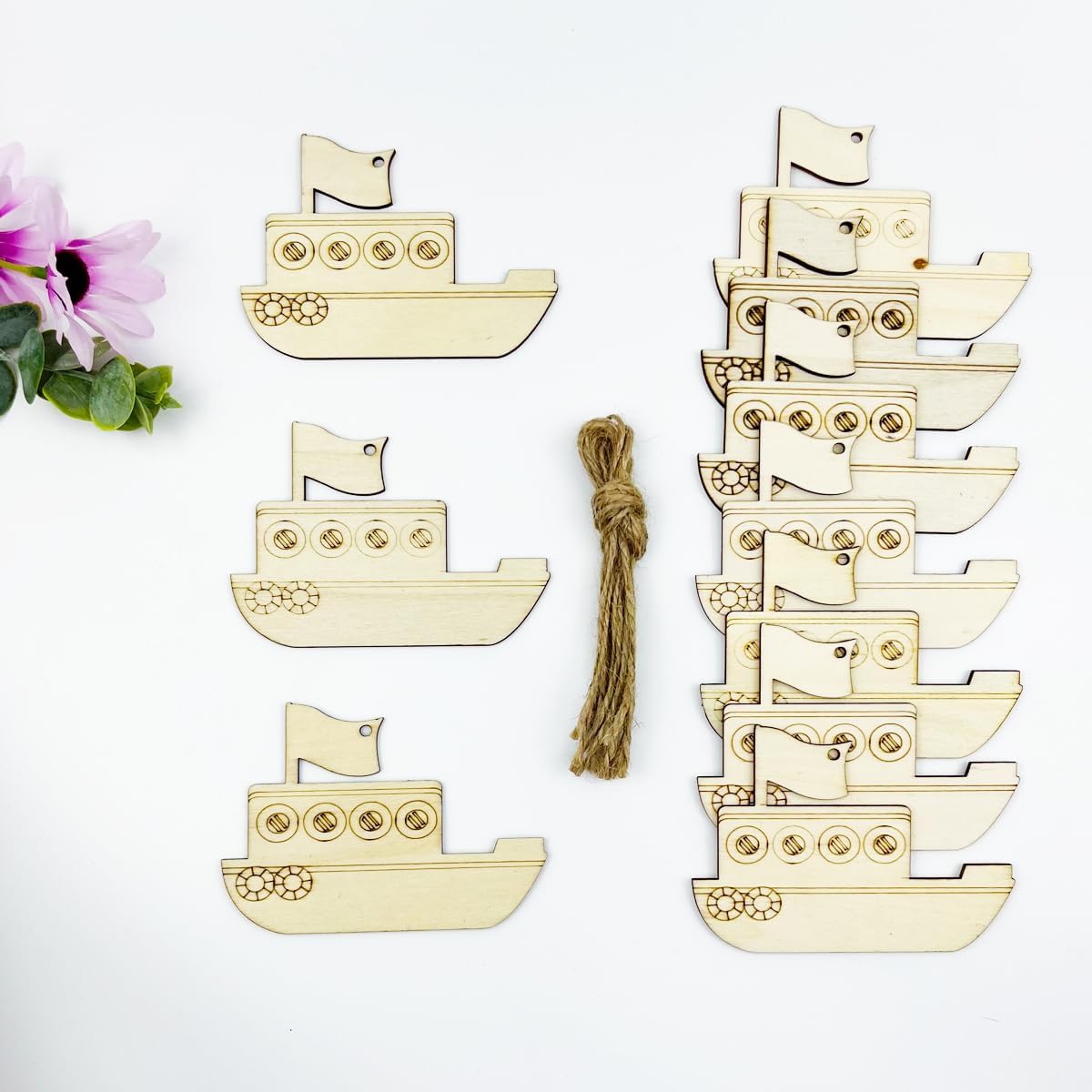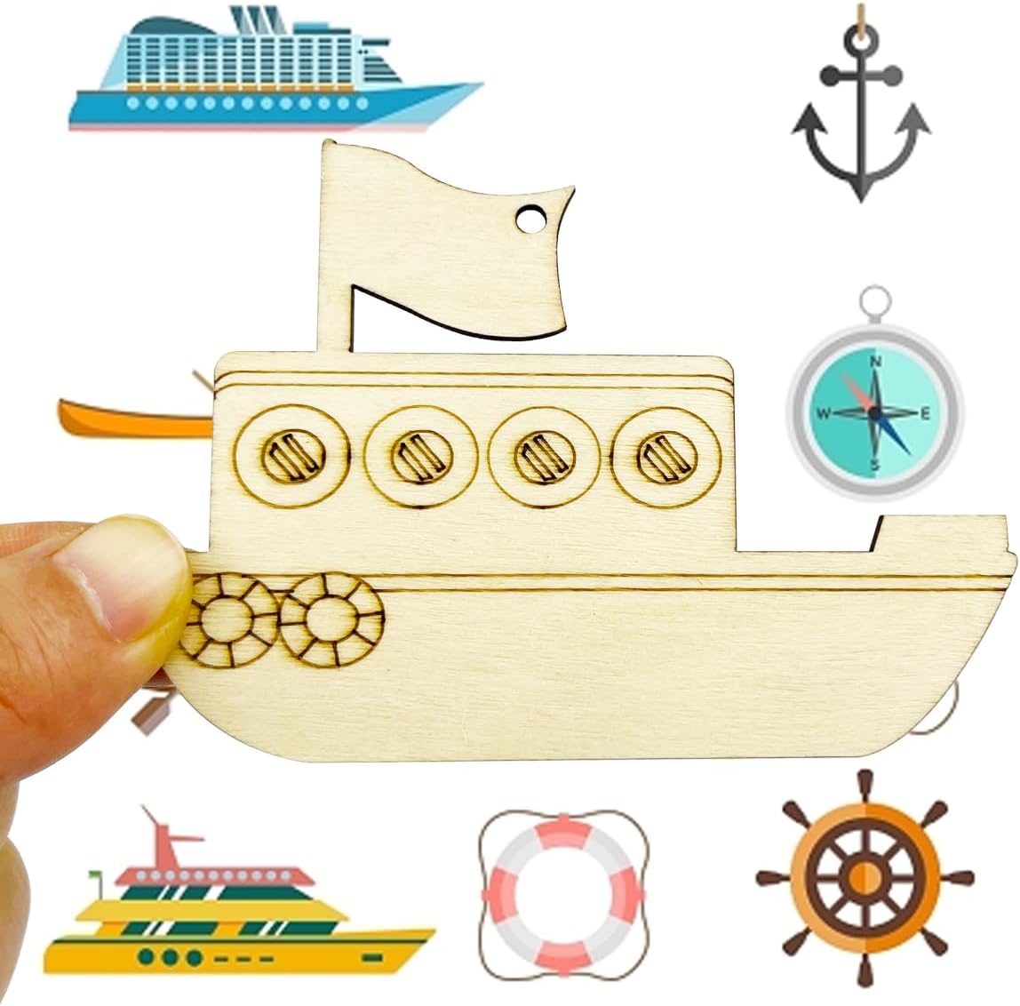 30pcs Unfinished Wooden Boat Cutout, DIY Crafts Cutouts Blank Wooden Sailboat Shaped Hanging Ornaments Gift Tags for Summer Ocean Sea Theme Party Decoration