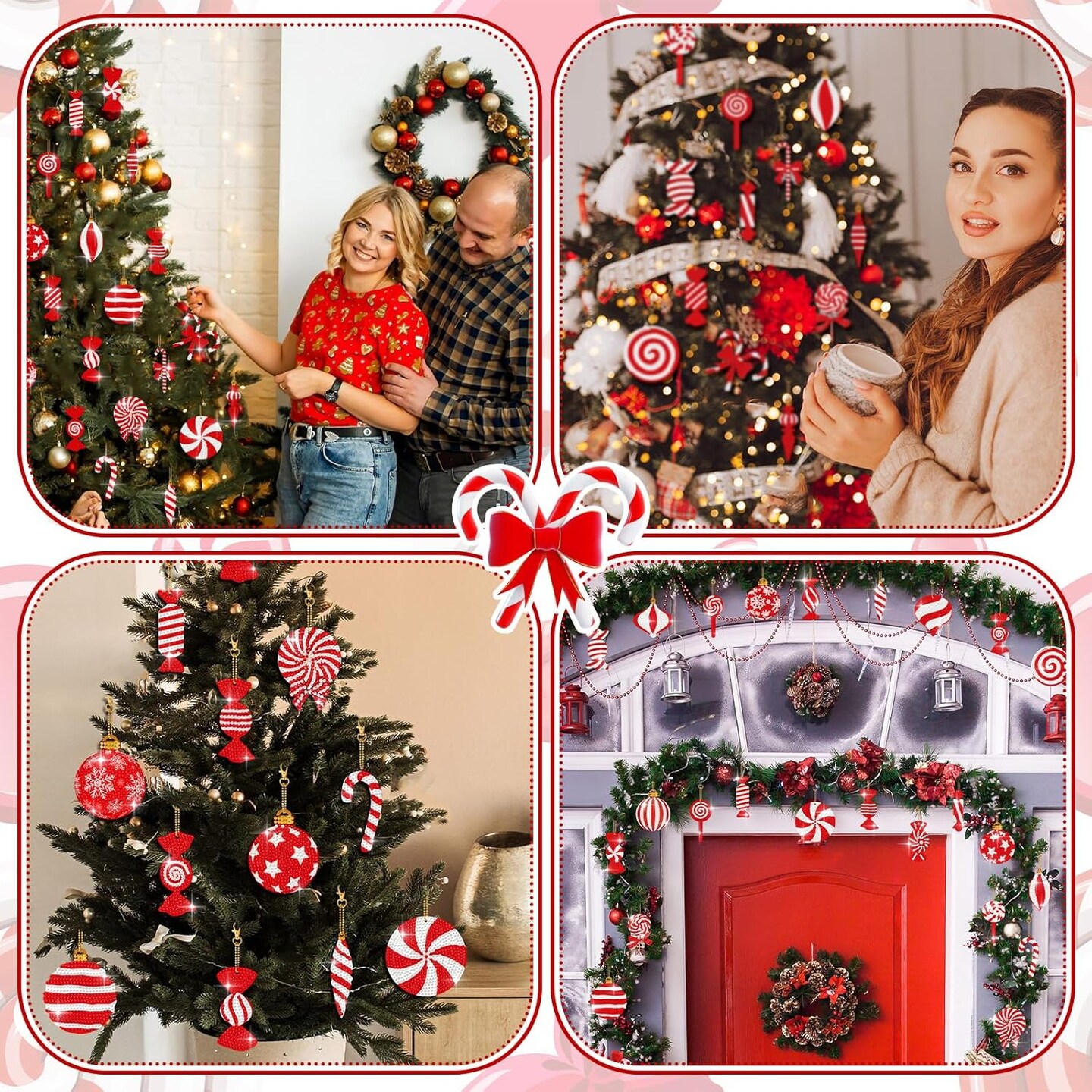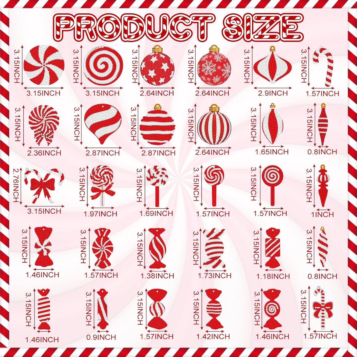30-Piece Christmas Candy Diamond Painting Keychains – Red & White 5D DIY Hanging Ornaments, Candy Pendant Diamond Art for Adults & Beginners, Holiday Craft Decor