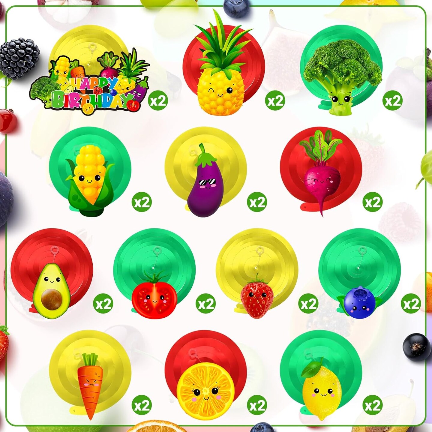 30-Piece Hey One Bear Fruit Birthday Hanging Swirls | Dancing Fruit & Vegetable Foil Ceiling Danglers for Summer Party, First Birthday & Garden Theme Decor
