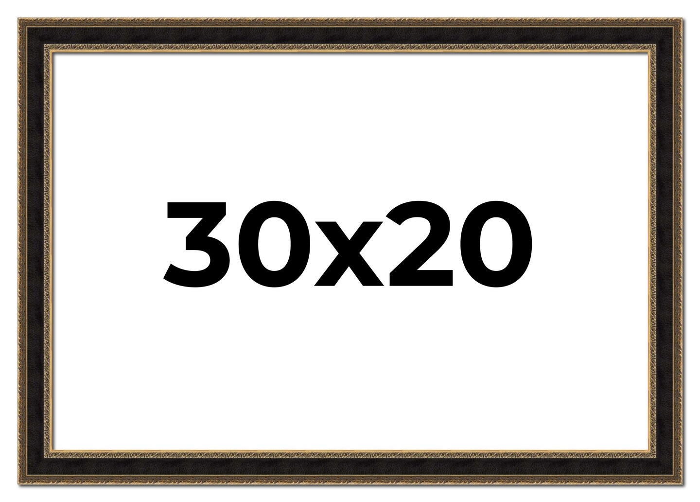 30x20 Ornate Brown Picture Frame - UV Acrylic, Foam Board Backing, Hanging Hardware