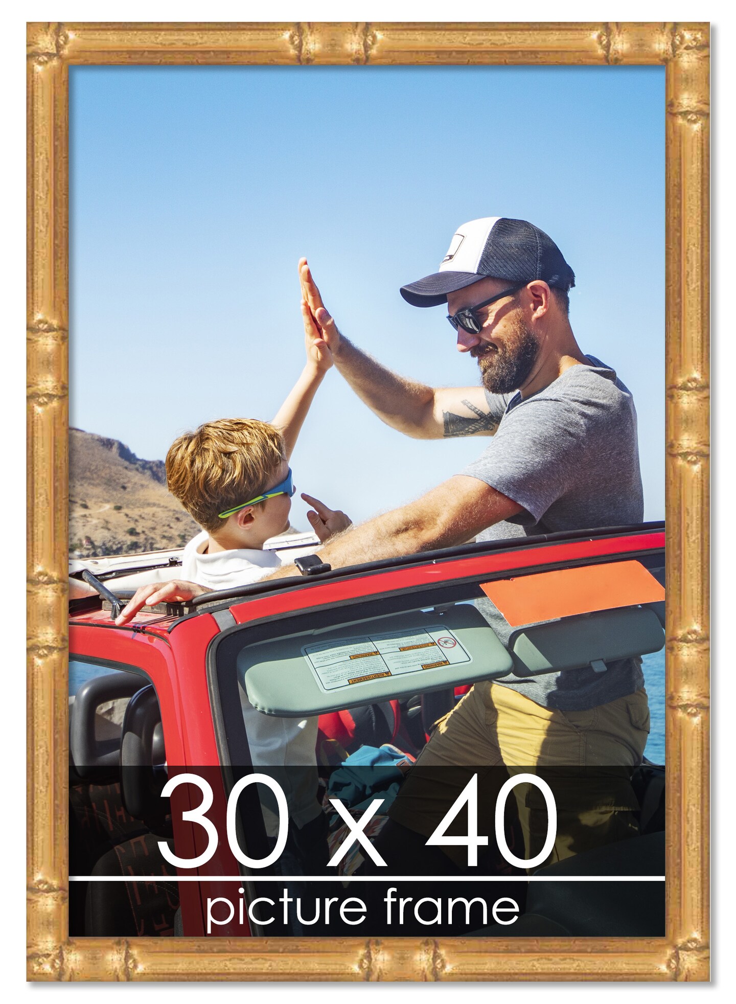 30x40 Thin Bamboo Picture Frame with UV-Resistant Acrylic & Acid Free Backing, Available in 2 Finishes - Gold and Brown