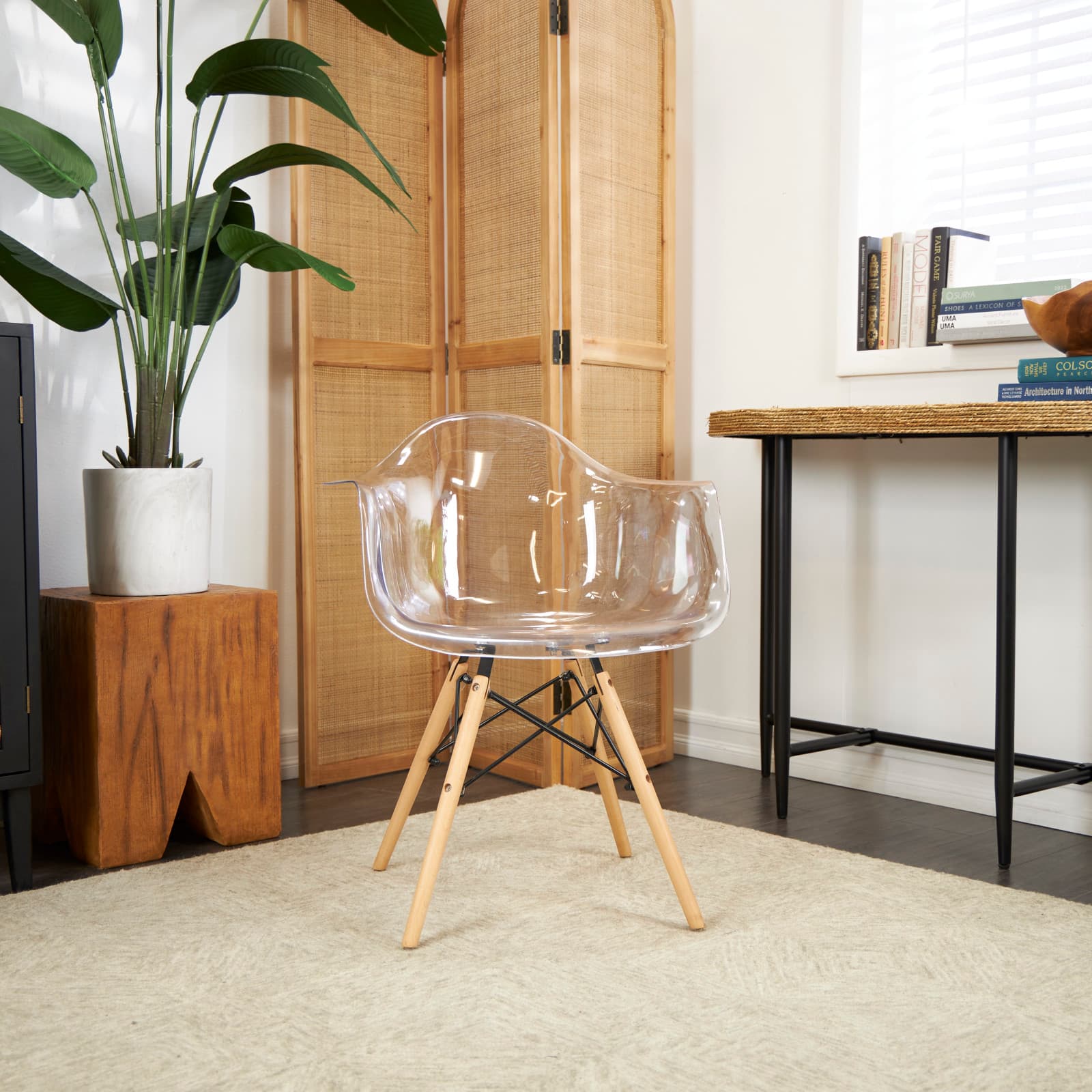 31" Clear Acrylic Mid Century Modern Eiffel Style Accent Chair with Wood Legs