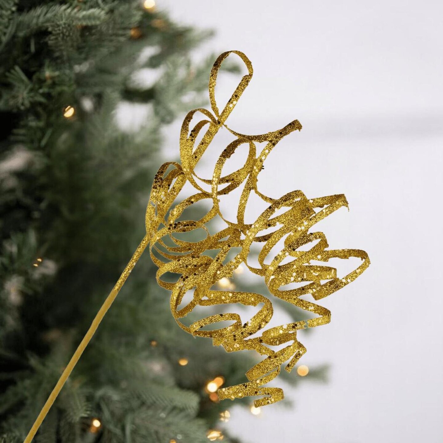 31" Curly Glitter Ribbon Spray: Gold