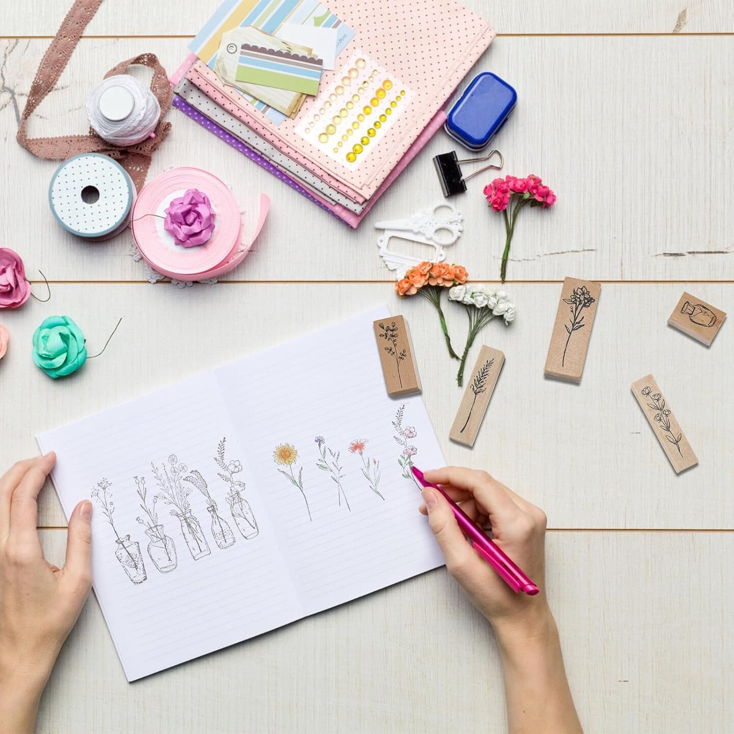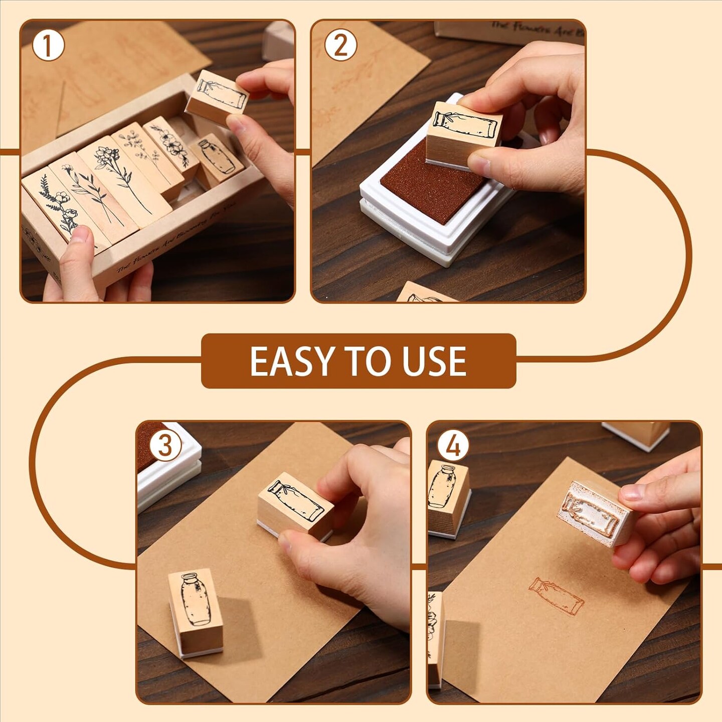 31 Pieces Vintage Wooden Rubber Stamps Flower Plant Decorative Cute Wood Mounted Stamps Set