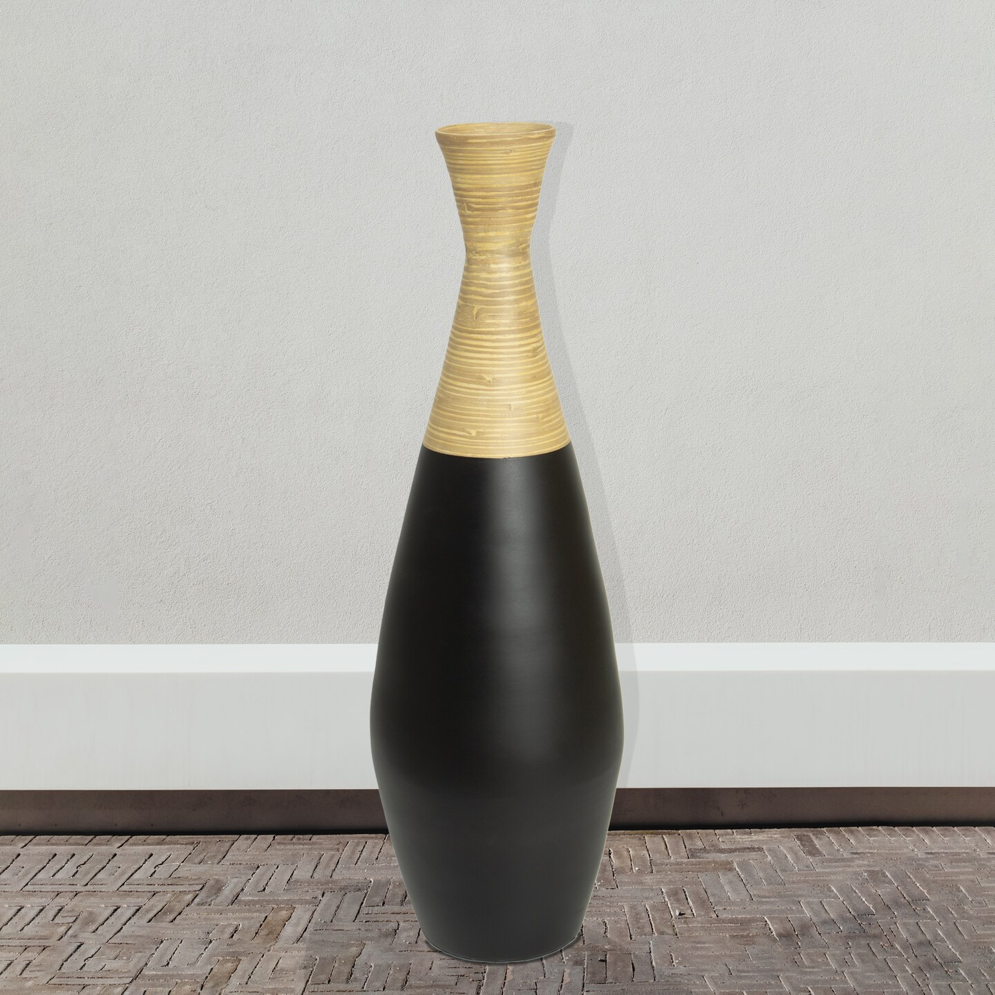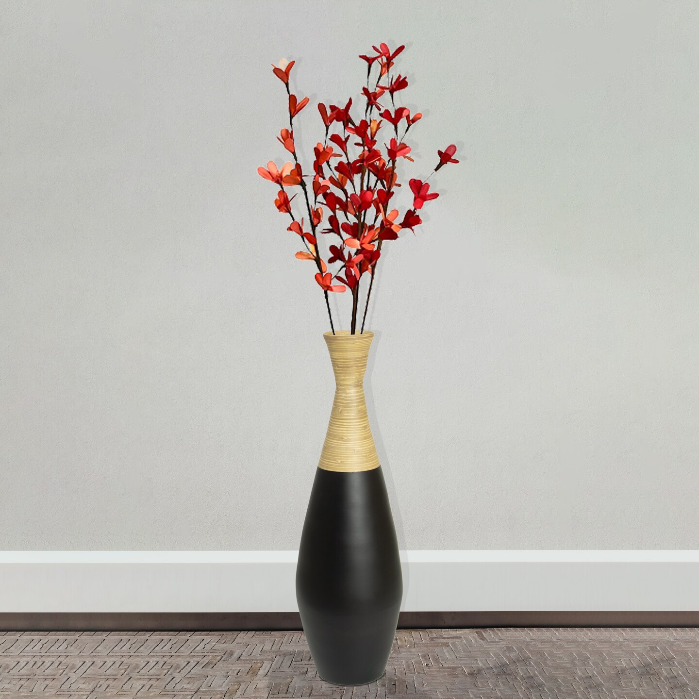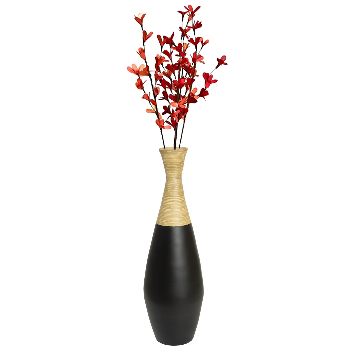 31.5 inch Spun Bamboo Tall Trumpet Floor Vase - Decorative Home Accent, Natural Bamboo, Indoor Decoration, Sustainable Materials, Tall Floral Display, Handmade Bamboo Vase, Floor Standing Vase
