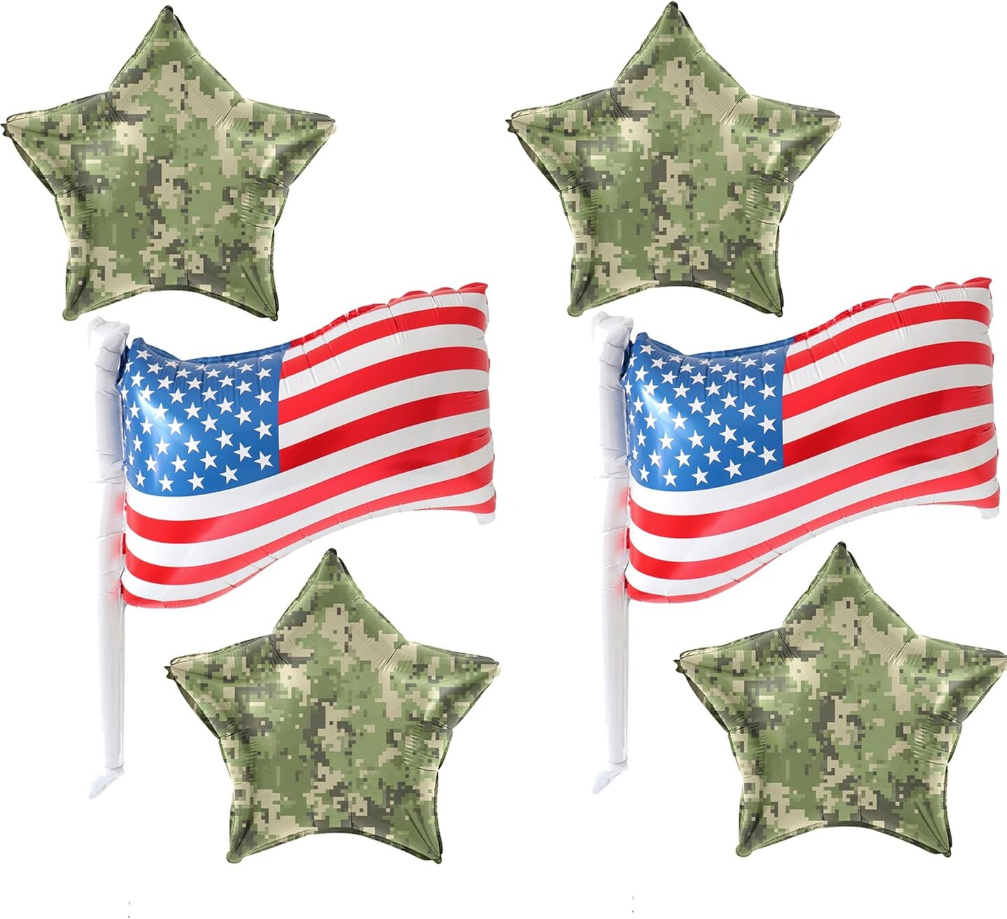 31Inch American Flag Balloons & 18in Camouflage Balloons Set of 6, Floatable Party Decorations for Military Homecoming, Patriotic Events, National Unity Celebrations(Helium-supported)
