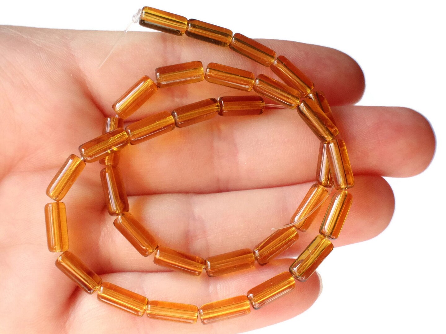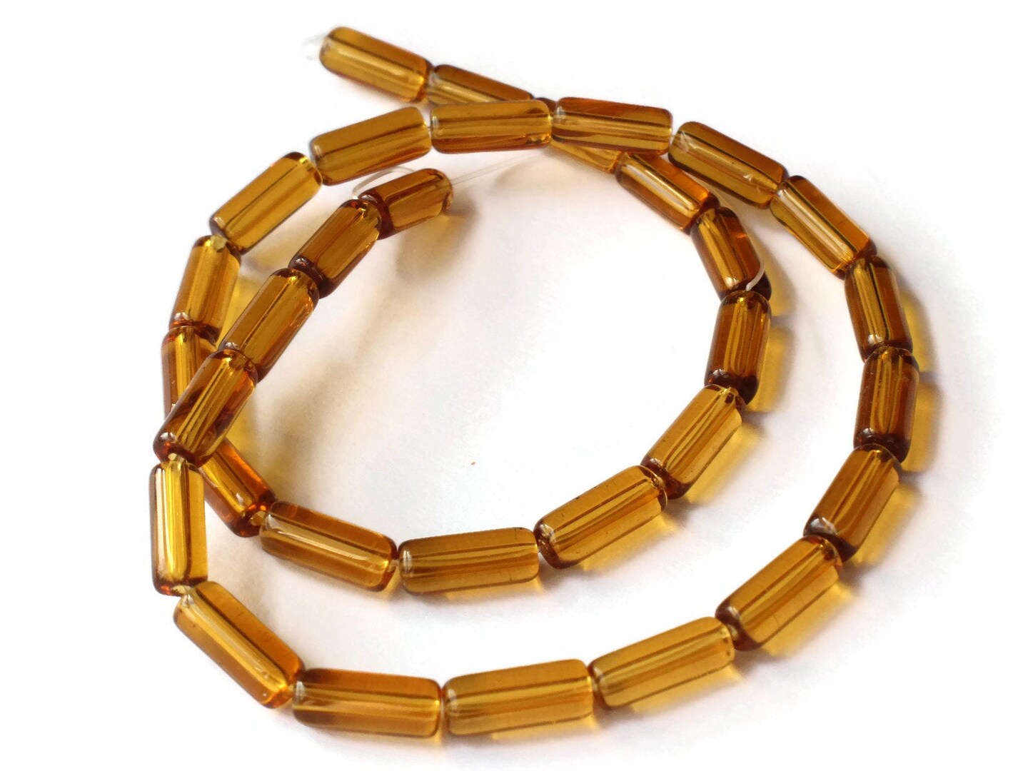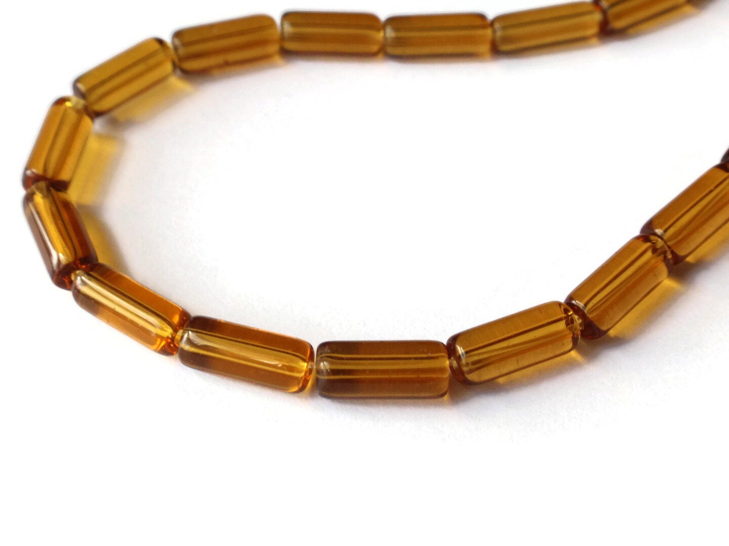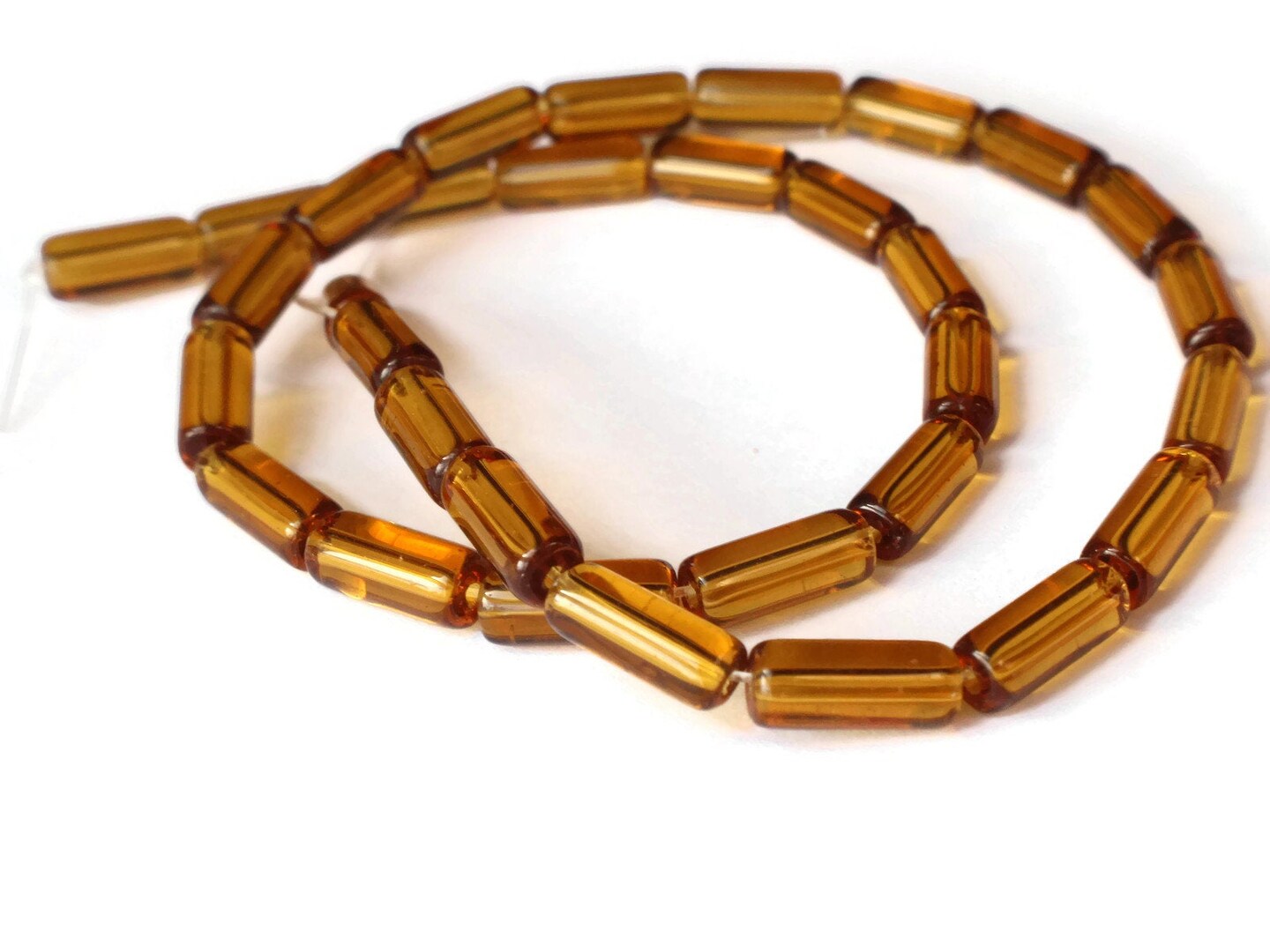 32 10mm Amber Brown Glass Tube Beads
