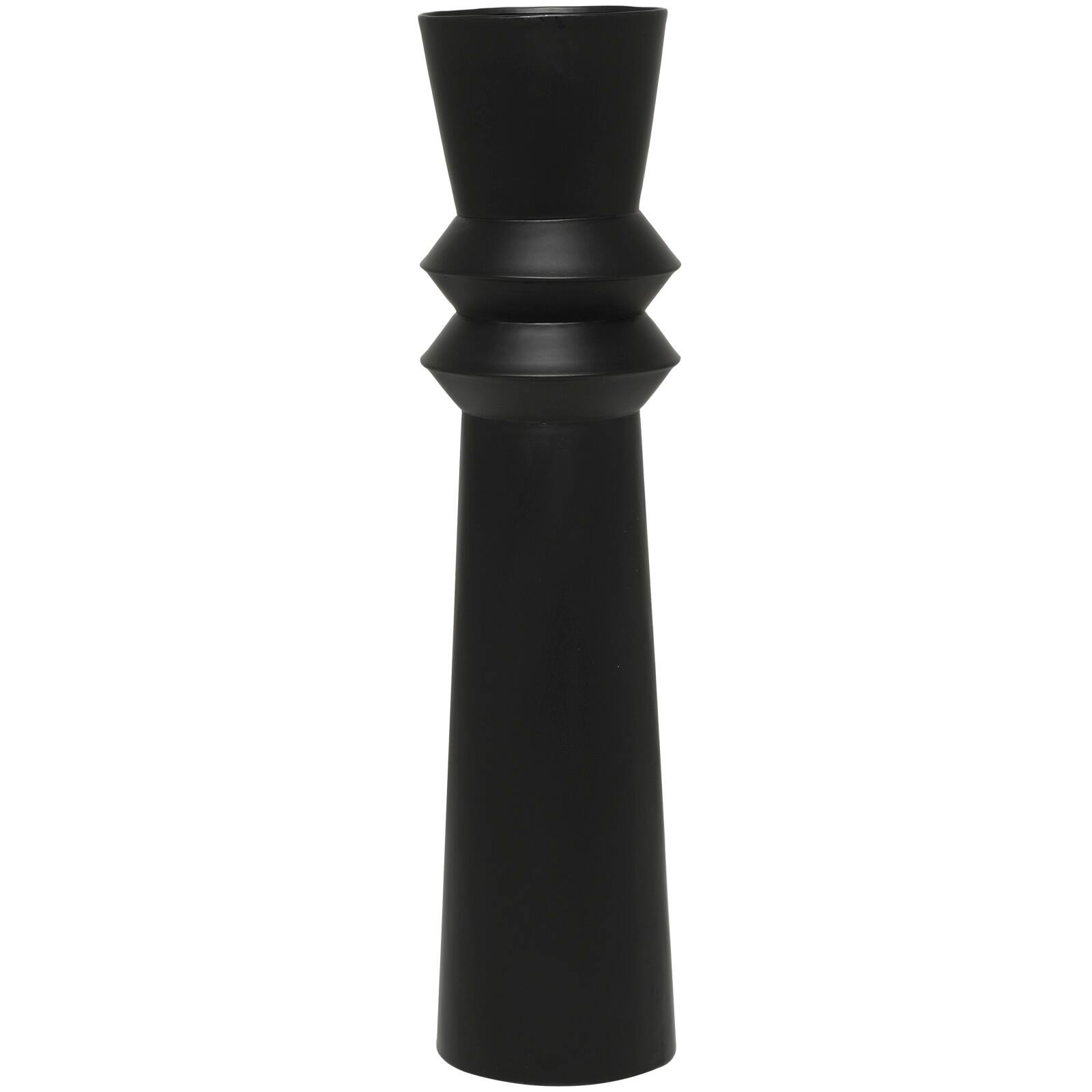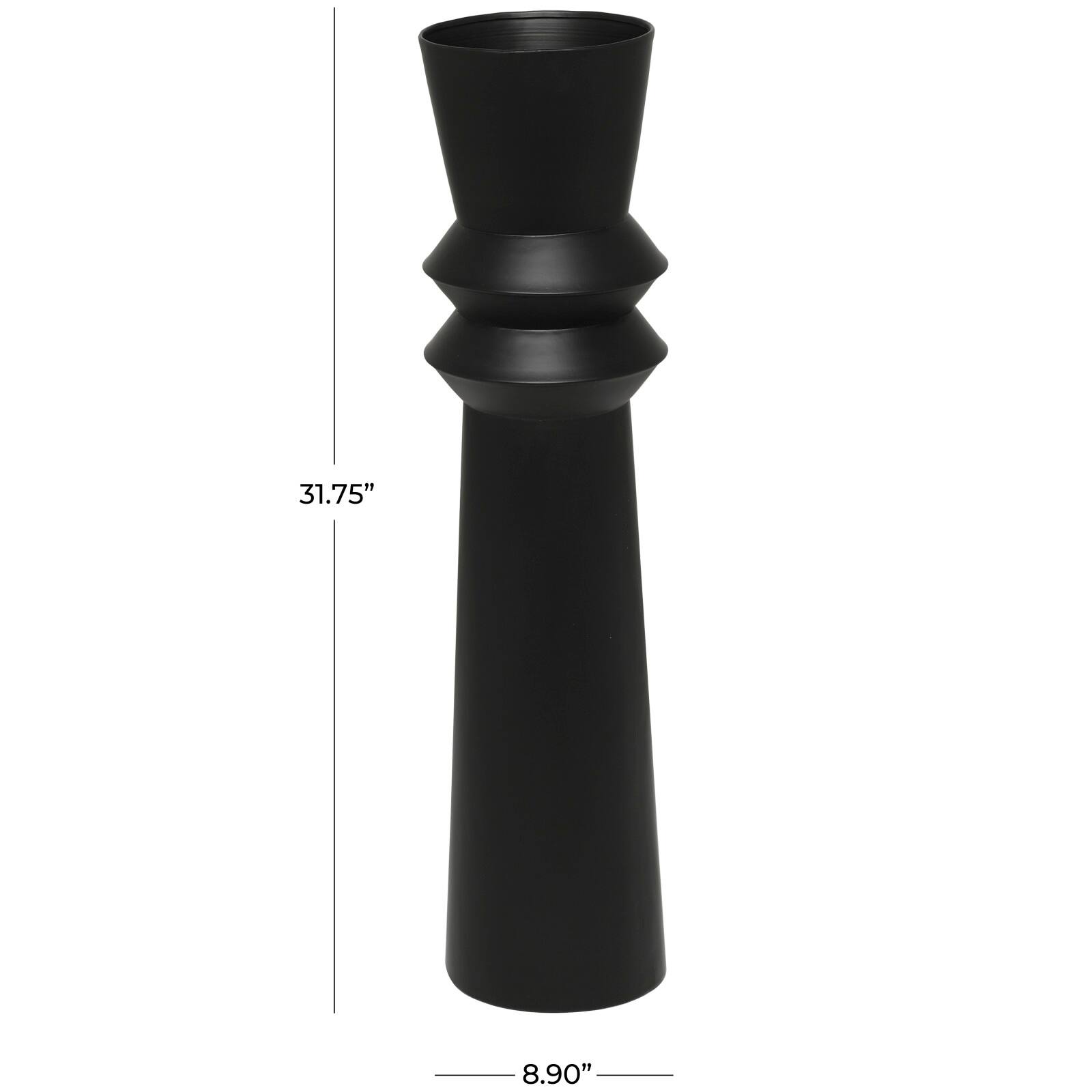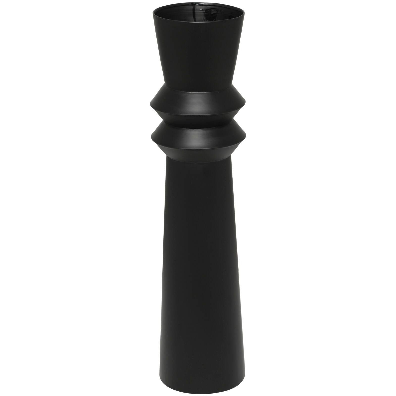 32" Black Art Deco Fluted Metal Floor Vase