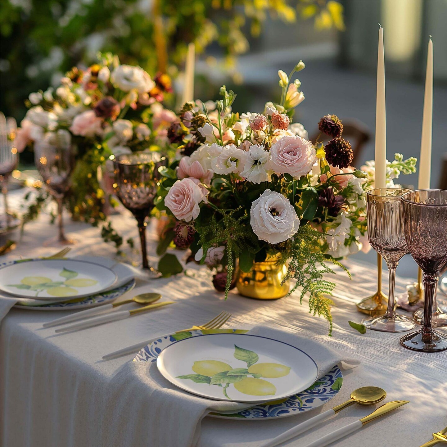 32 Count Tuscan Design Paper Plates Combo Set Elegant Disposable Dinnerware 10 inch + 8 inch