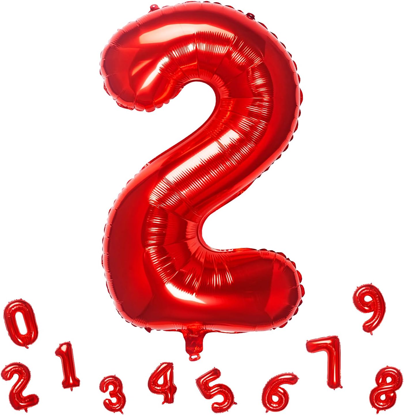 32 Inch Red Number 2 Balloons Foil Ballon Digital Birthday Party Decoration Supplies (Red Number 2 Balloon)