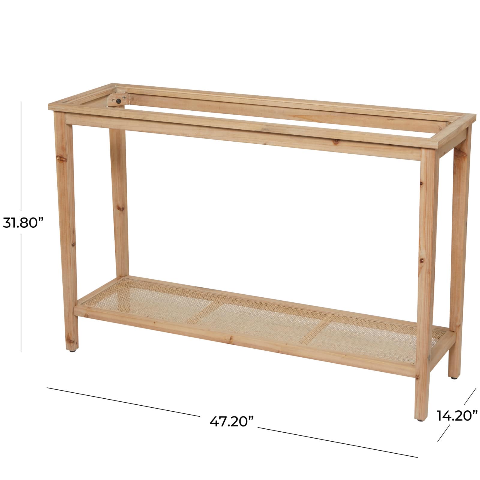 32" Natural Brown Wood Shelf Console Table