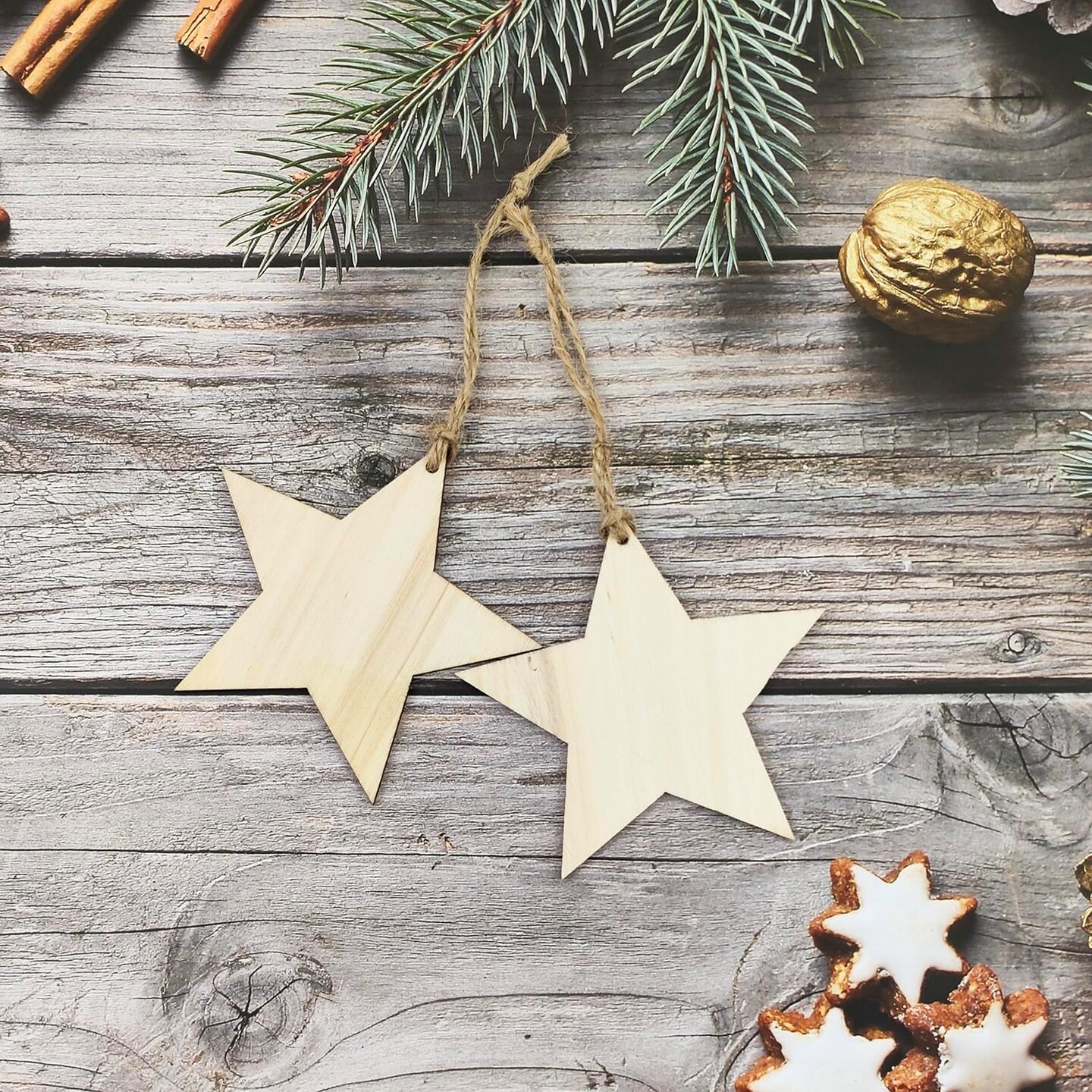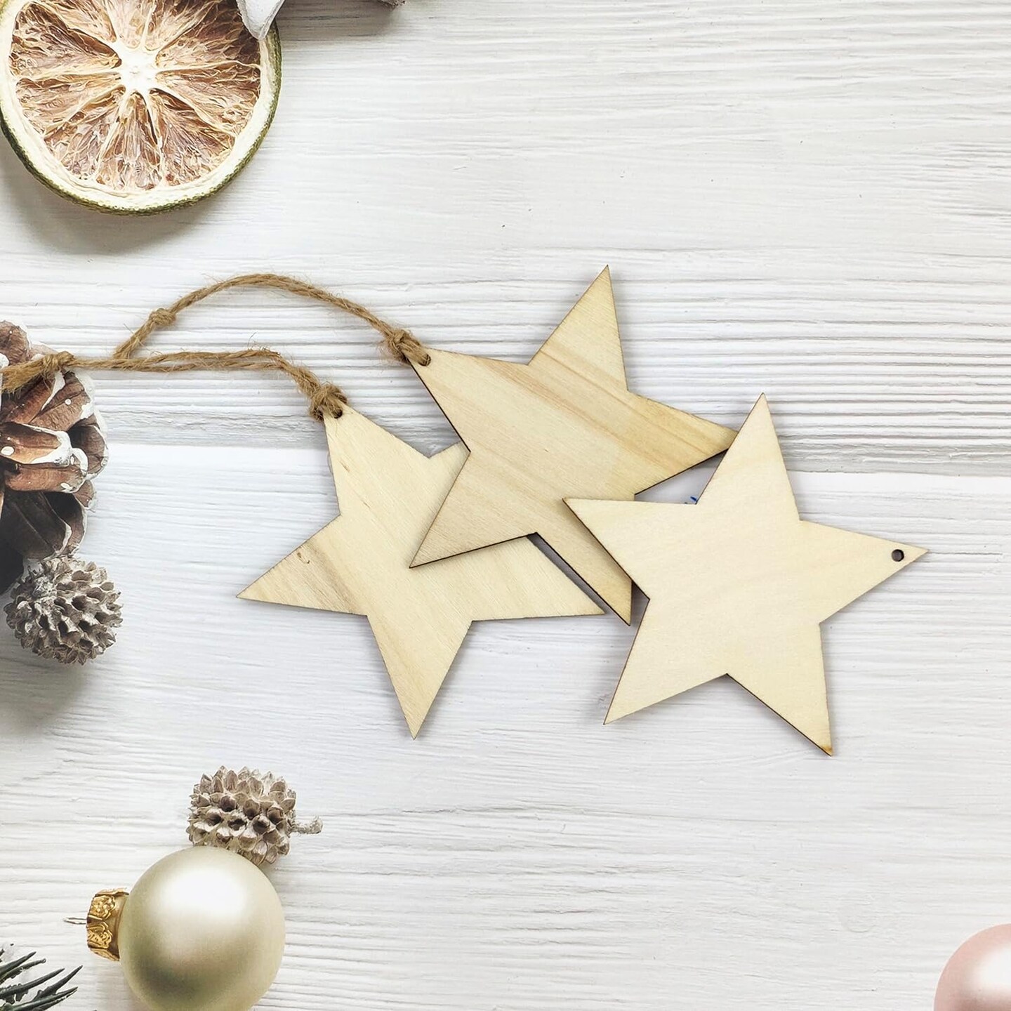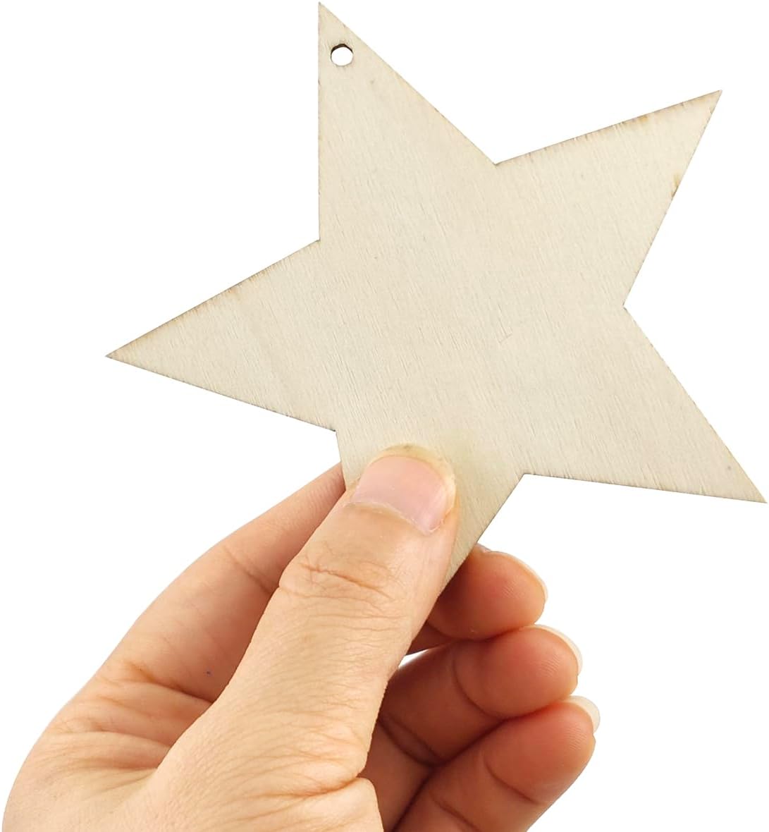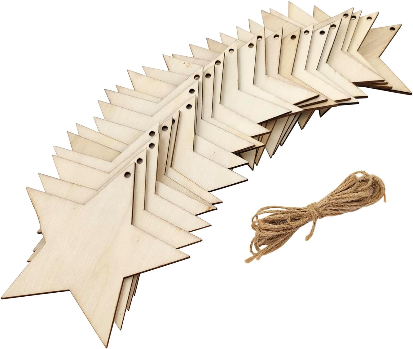 32 Pack Wooden Star Cutouts - Unfinished Wooden Stars for Hanging Ornaments, DIY Craft Gift Tags & Home Party Decoration