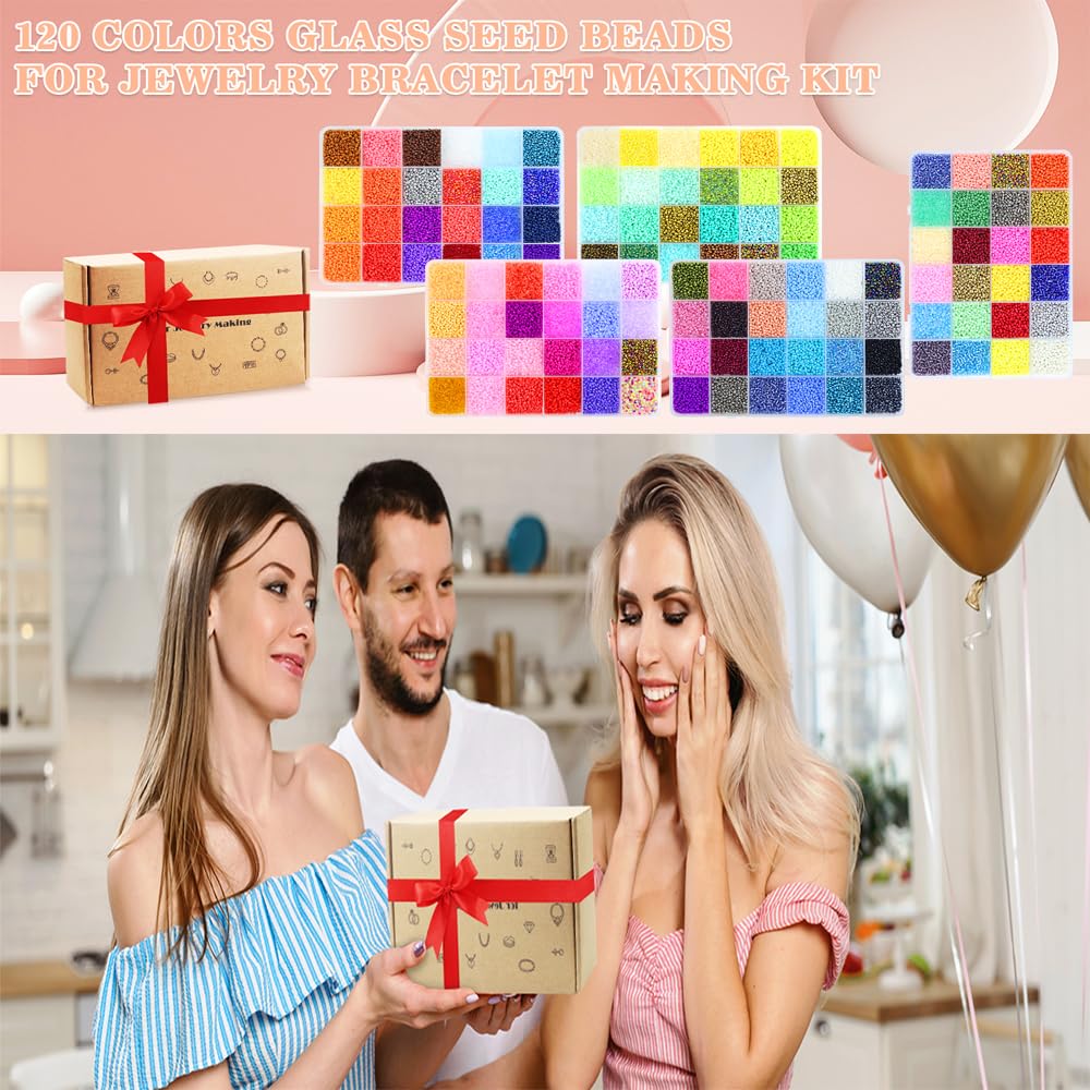 32400pcs Glass Seed Beads for Jewelry Making Kit, 120 Colors 3mm Small Beads Kit Bracelet Beads with Letter Evil Eye Beads Jump Rings & Charms Pendants for Bracelets Making, DIY, Art and Craft