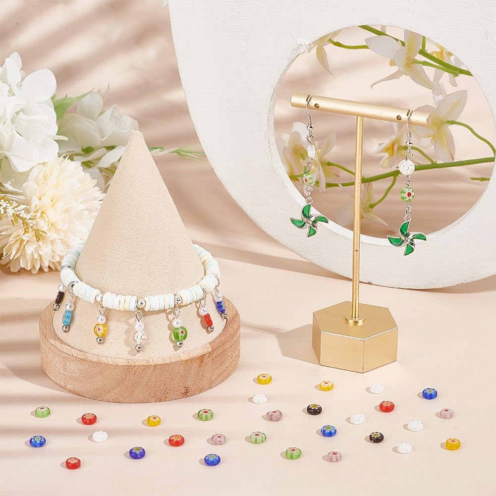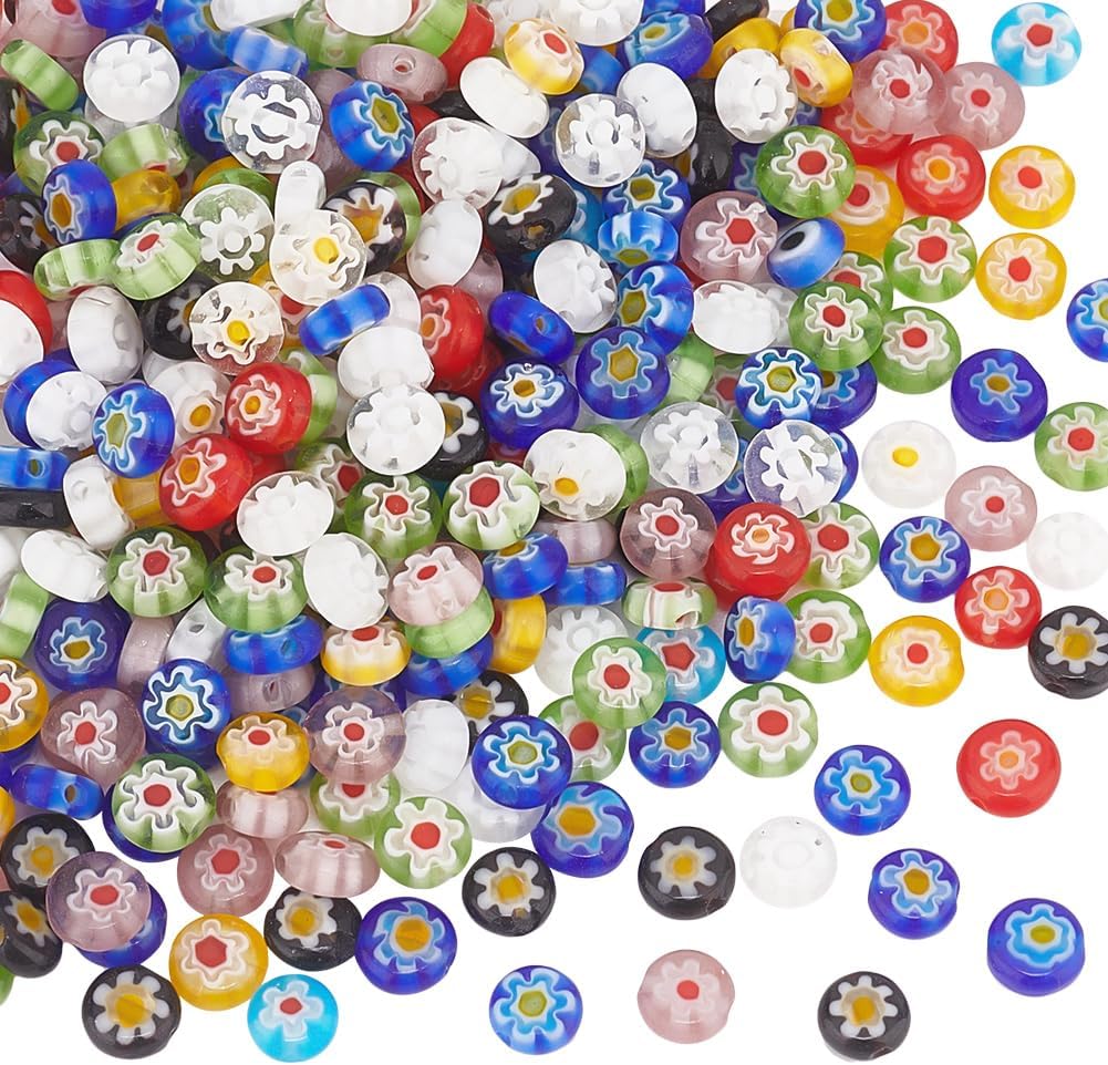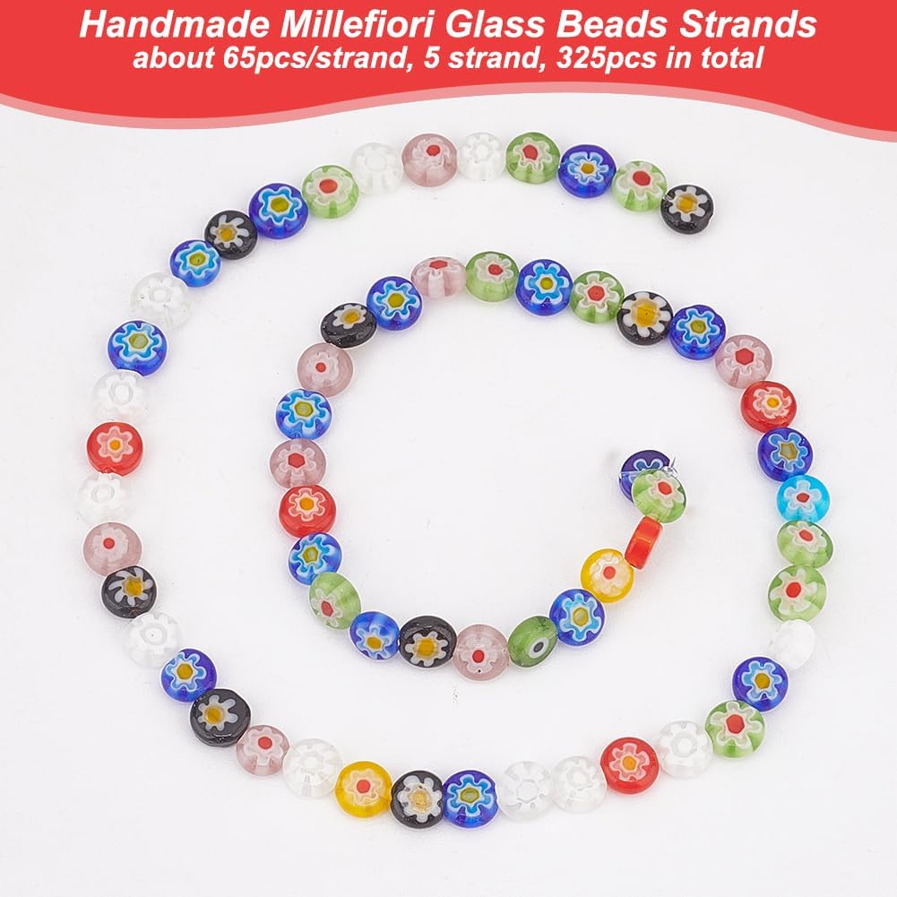 325Pcs/5 Strands Millefiori Lampwork Glass Beads 6mm Flat Round Flower Glass Beads Handmade Flower Millefiori Lampwork Bead Loose Spacer Bead for Jewelry Making DIY Crafts
