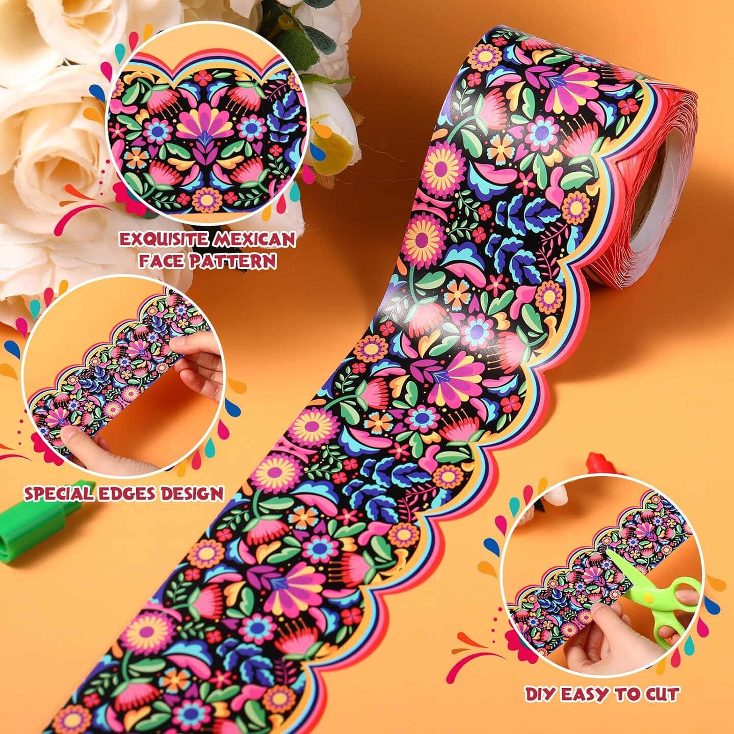 32.8 ft Mexican Bulletin Board Borders Spanish Bulletin Border (Multicolor)