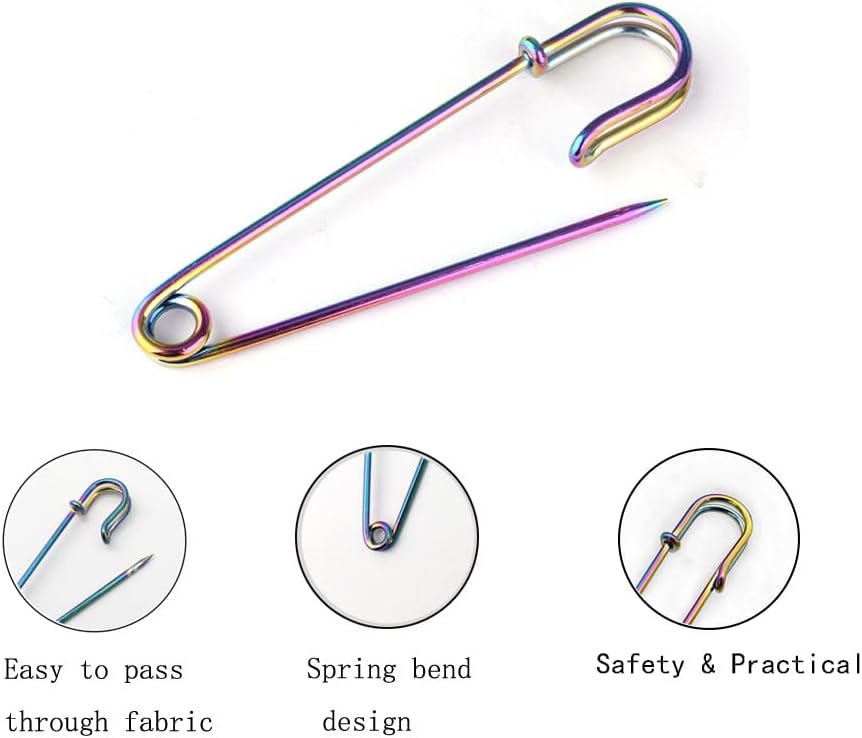 32PCS 65mm Rainbow Safety Pin - Brooch Bulk Heavry Duty Metal Small Pins for Home Sewing Crafts Bag Decorations Accessories