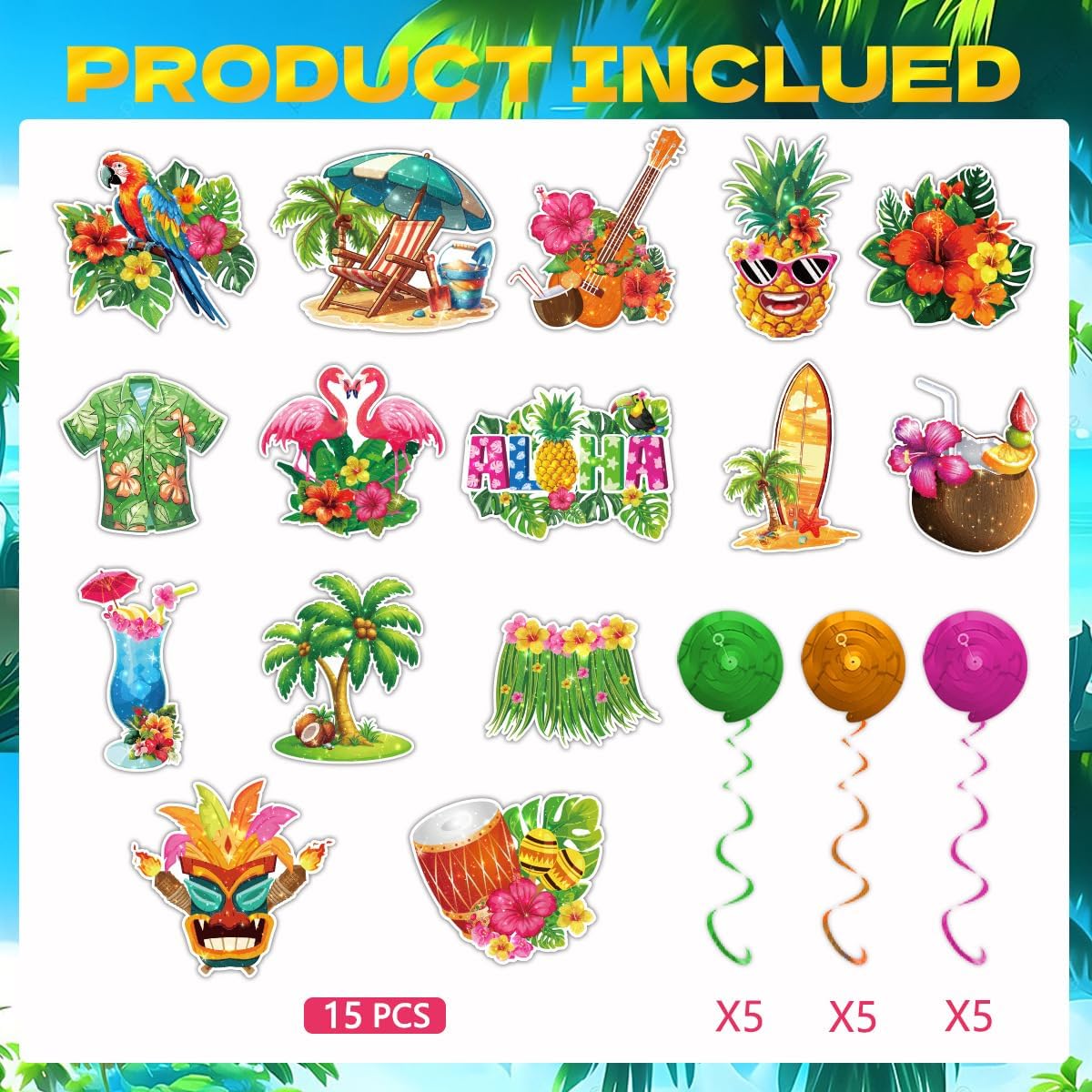 32pcs Hawaiian Aloha Party Decorations, Hawaiian Aloha Birthday Banner Hanging Swirls